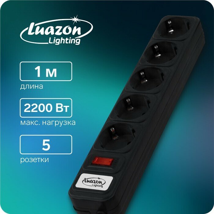 Luazon Lighting Сетевой фильтр Luazon Lighting, 5 розеток, 1.0 м, 2200 Вт, 3 х 0.75 мм2, 10 A, 220 В, черный