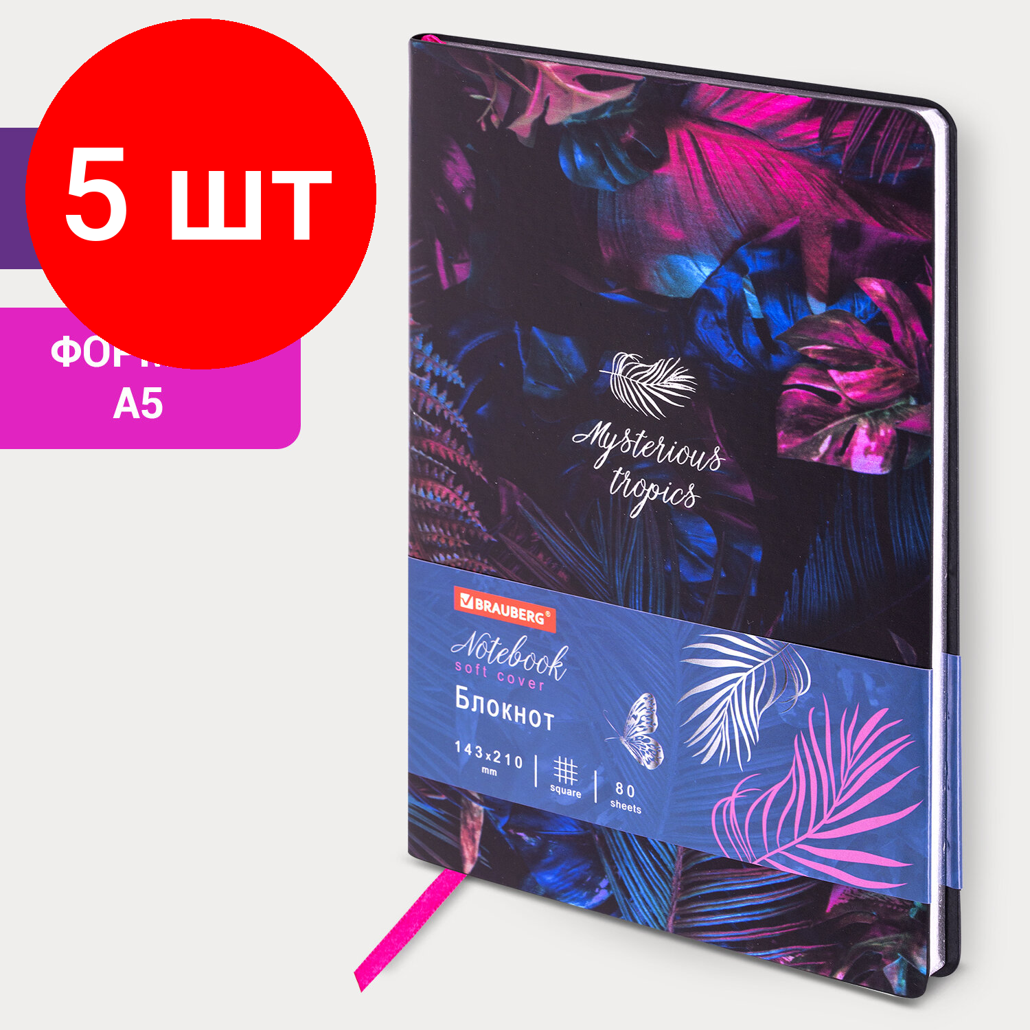 Купить Комплект 5 шт, Блокнот А5 (143x210 мм), BRAUBERG VISTA "Tropicano", под кожу, гибкий, срез фольга, 80 л., 112079