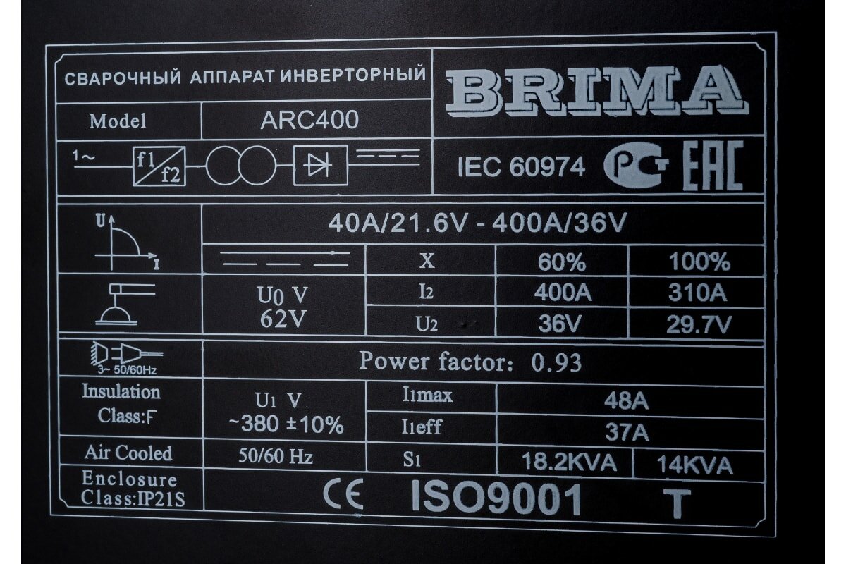 Сварочный аппарат инверторный BRIMA ARC-400 (380В) интересное: