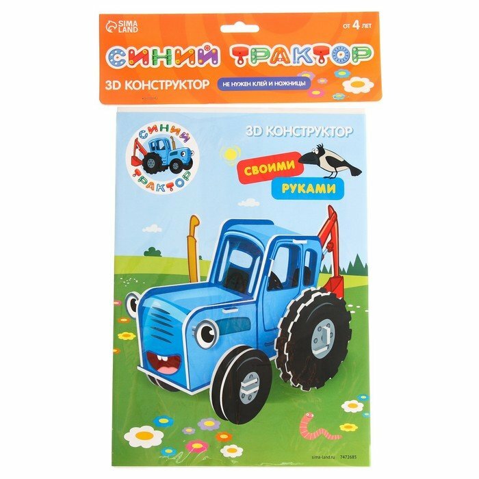 Синий трактор 3D конструктор из пенокартона Синий трактор, 2 листа