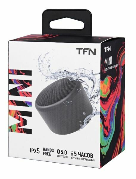 Портативная колонка TFN "Mini", серая, Bluetooth 5.0, питание автономное, время работы до 5 часов
