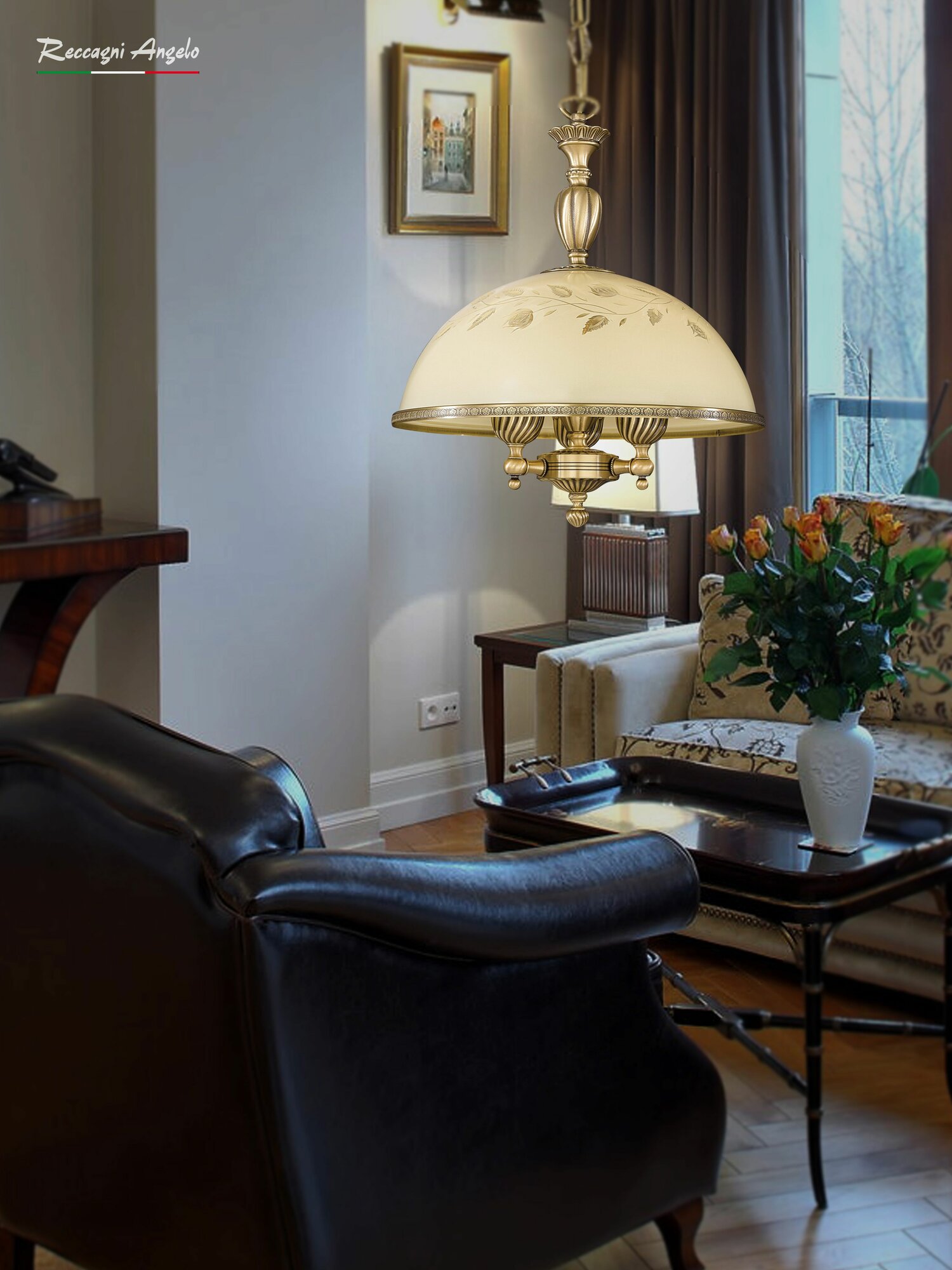 L 6208/38 Люстра подвесная Reccagni Angelo, 1 плафон, бронза