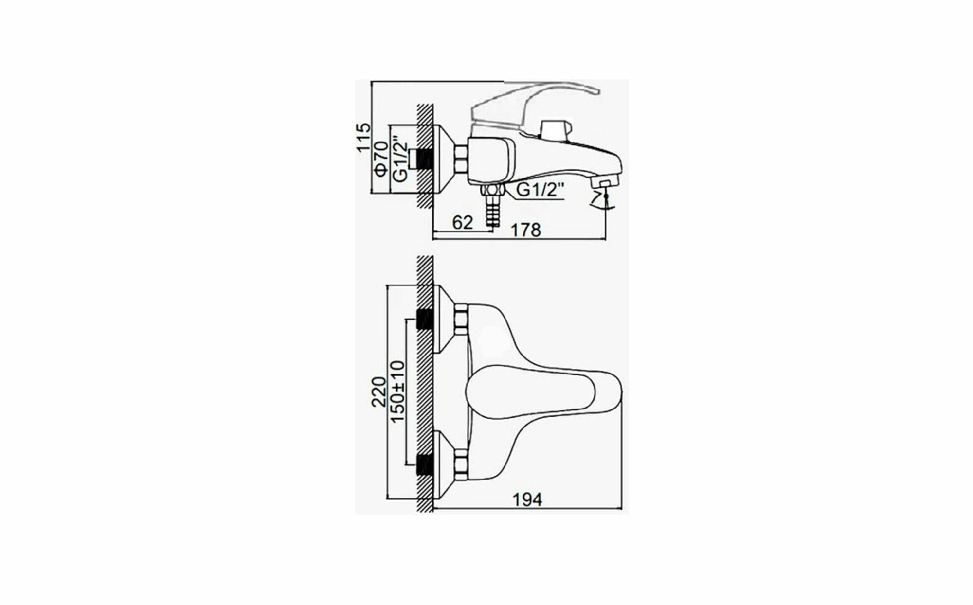 Смеситель для ванны и душа D-Lin с коротким изливом, хром D130401-8