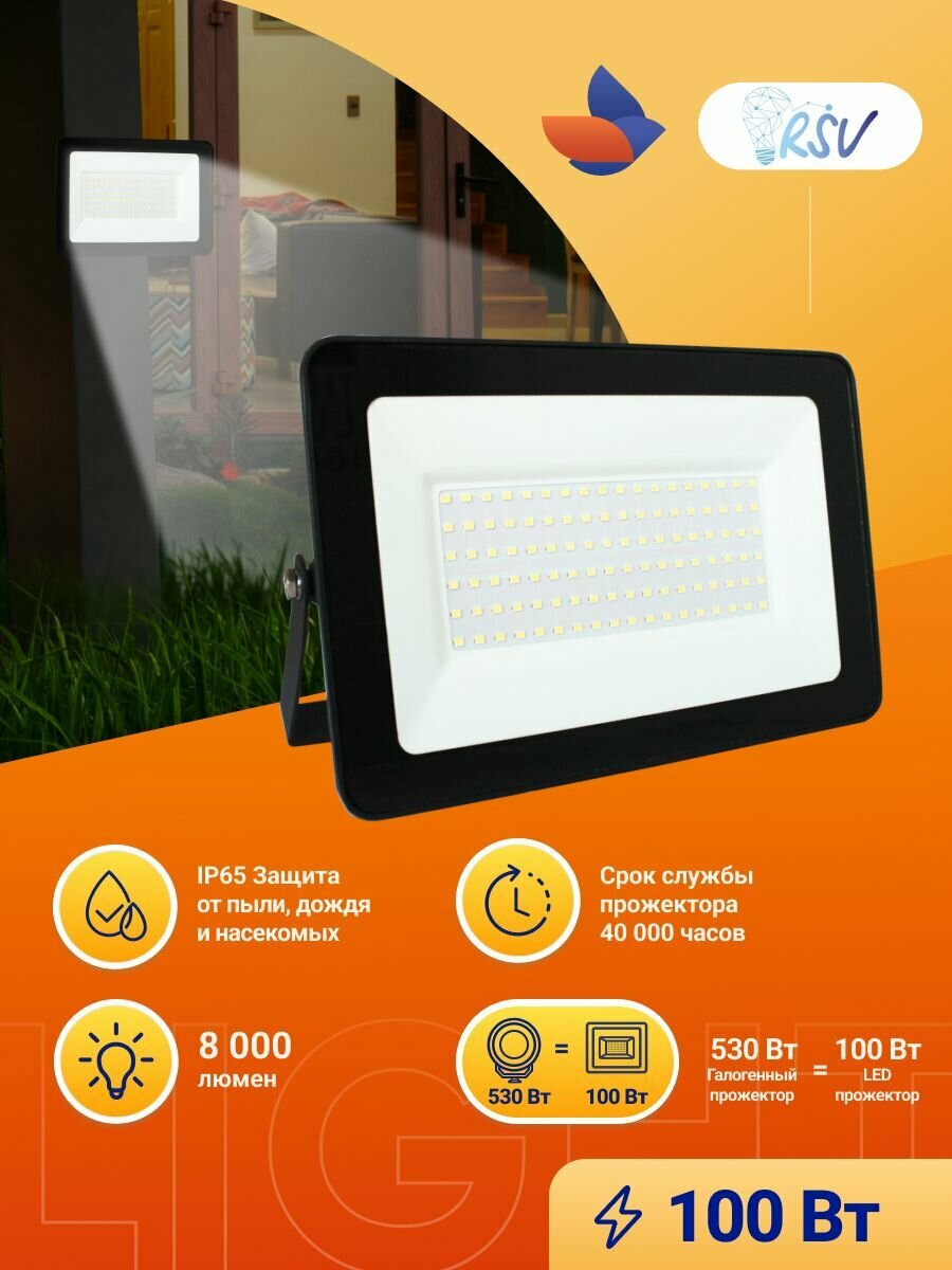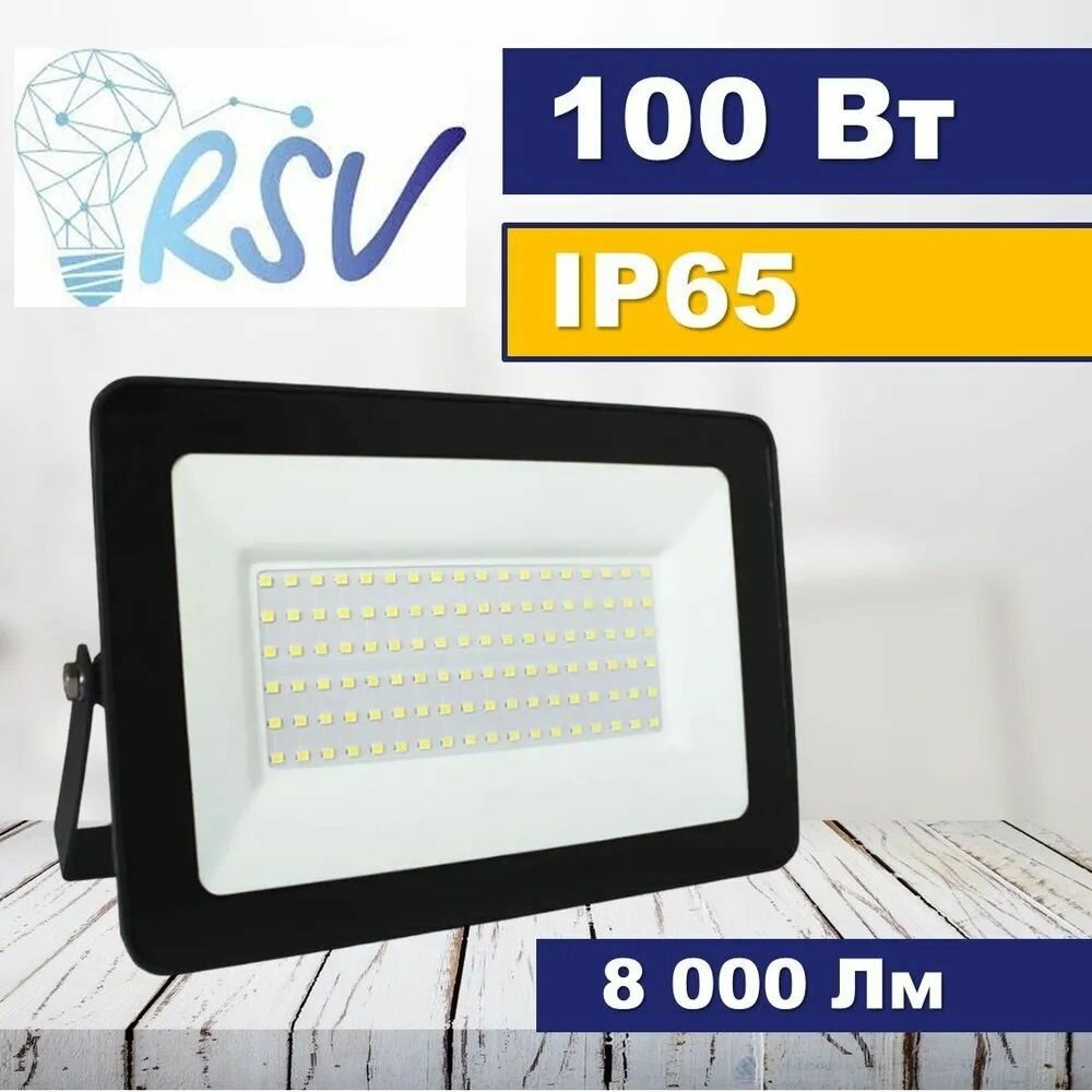RSV Прожектор уличный 100 Вт RSV-SFL-3-100W-6500K-IP65 черный, светодиодный фонарь, 8000 Лм, 100 Вт, IP65, настенный, накладной