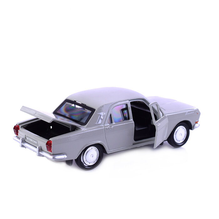Машинка детская ГАЗ-2401 Волга 12 см, Технопарк, серая, металлический корпус, открываются двери и багажник