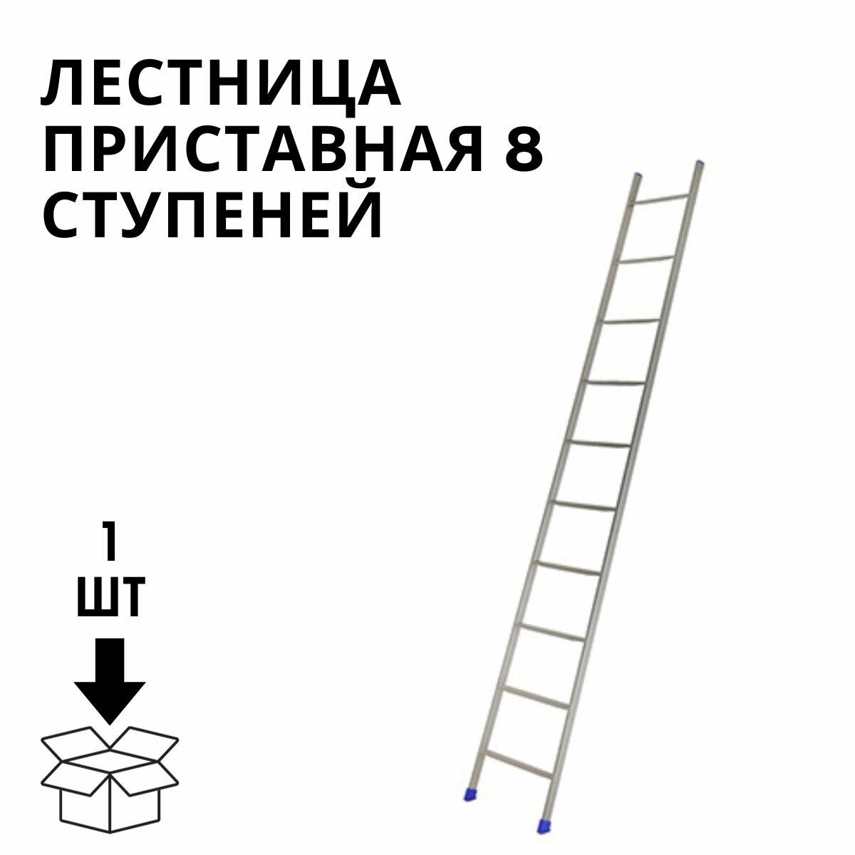 Надежная, устойчивая приставная лестница, 8 ступеней, 2,1 м. для строительства загородного дома и эксплуатации коттеджа, ремонтных, монтажных или очистительных работ на высоте