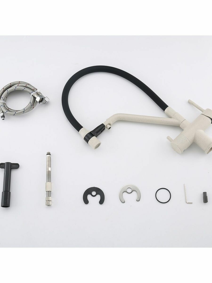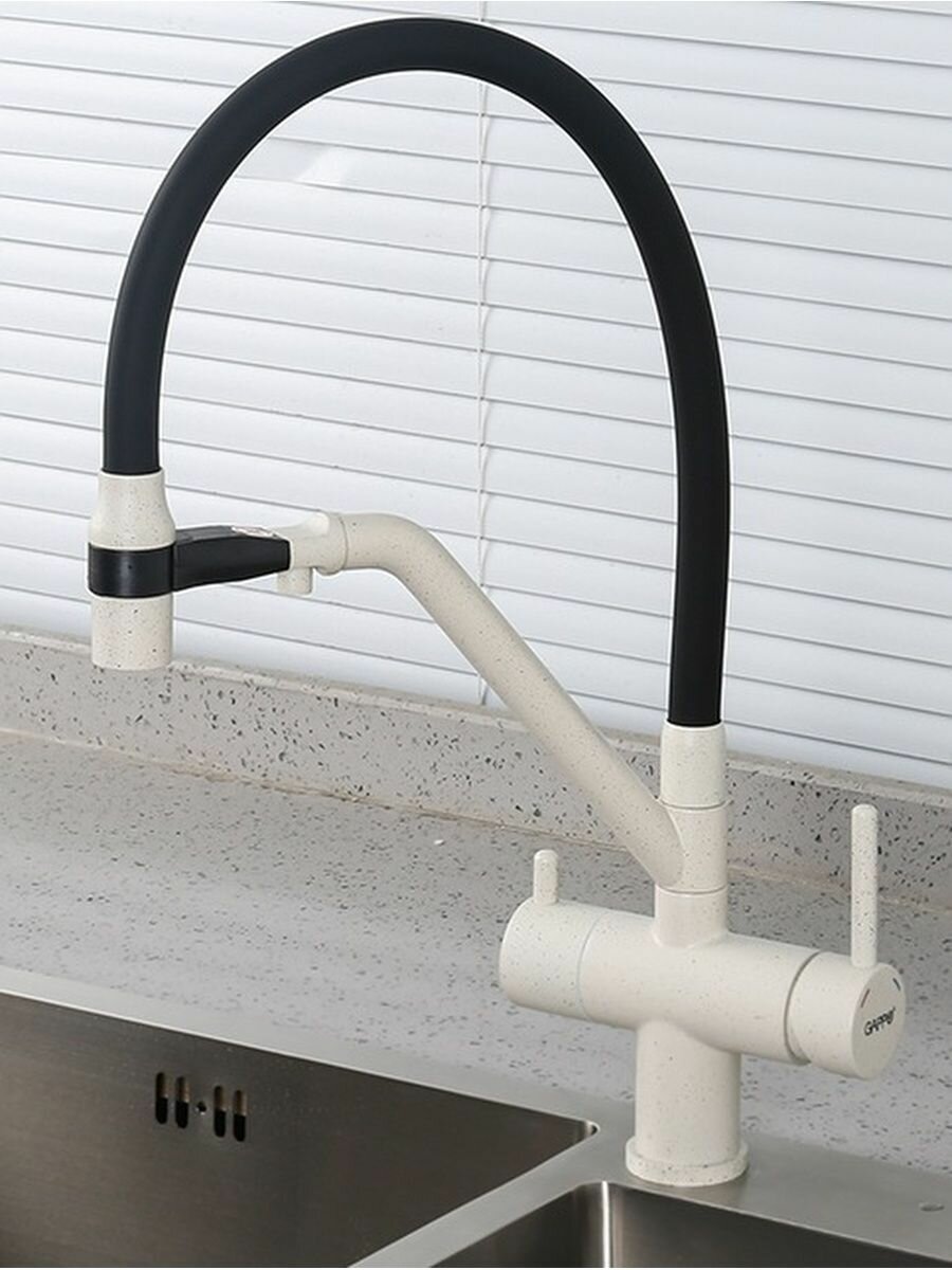 Смеситель для кухни гибкий излив с фильтром для воды Gappo G4398-81, черный/белый гранит