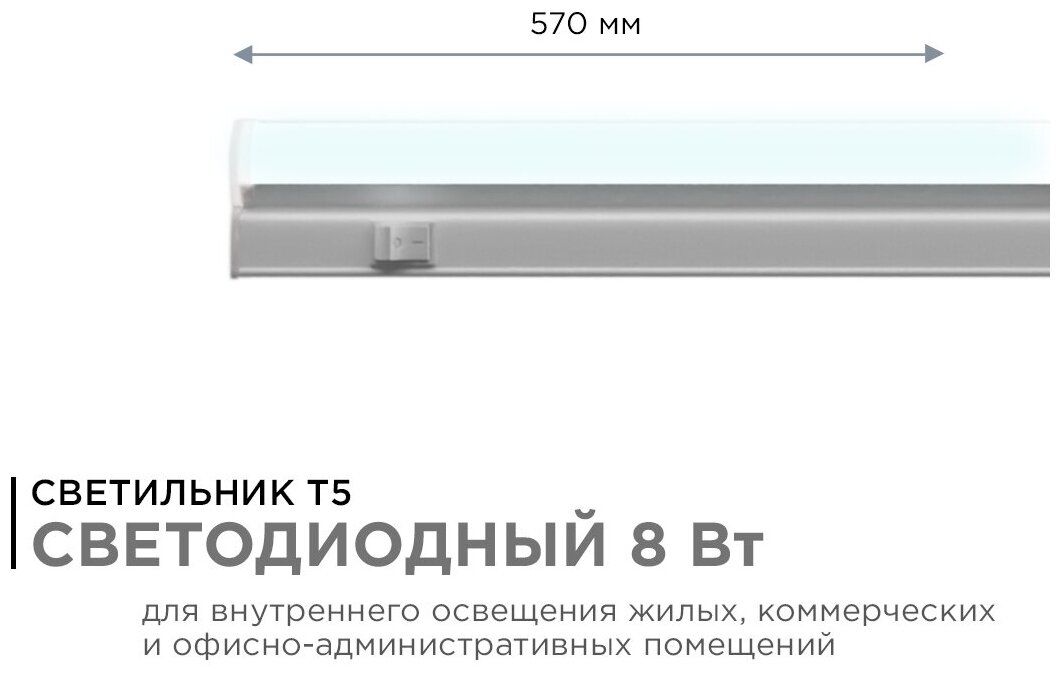 Светильник светодиодный линейный APEYRON ELECTRICS 14-52 аналог т5, 8вт, ip20