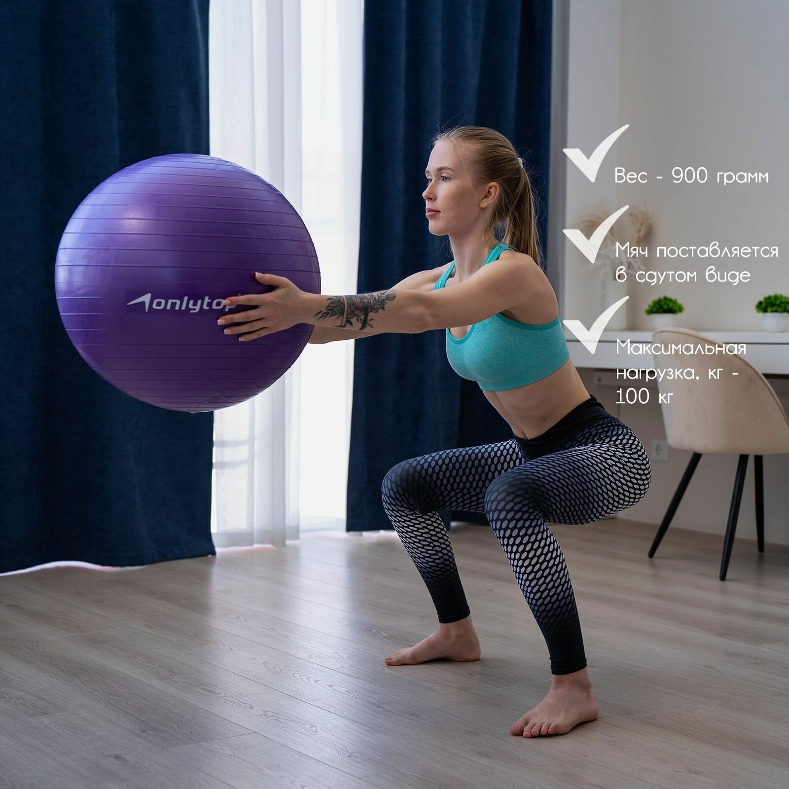 Купить Фитбол ONLYTOP, диаметр65 см, 900 г, антивзрыв, цвет фиолетовый