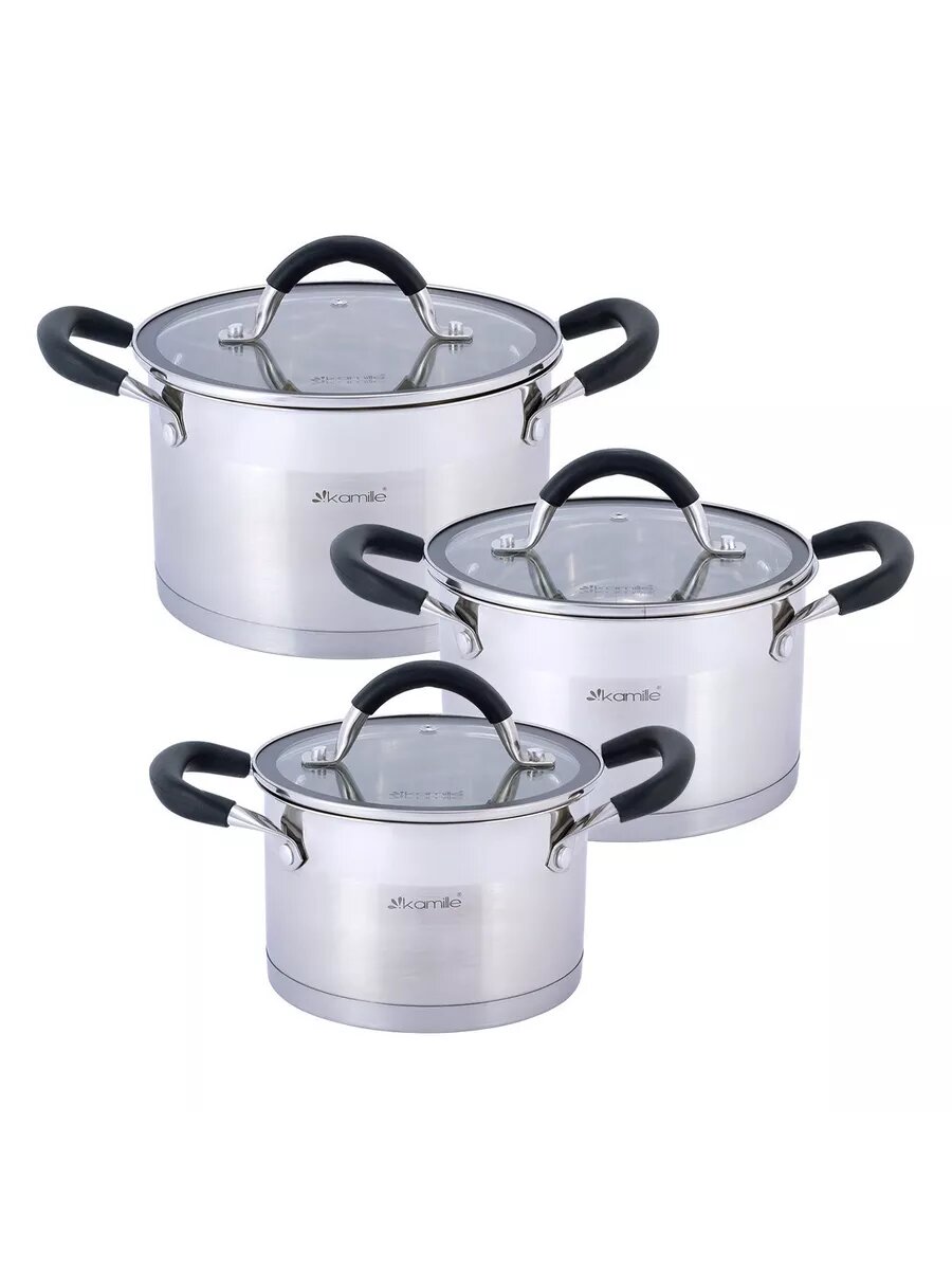Набор кастрюль 6 предметов (16*10cm, 20*11,5cm, 24*13,5см) из нержавеющей стали KAMILLE