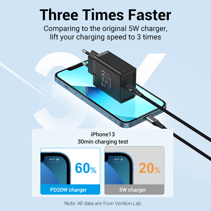 Сетевое зарядное устройство Vention на 1 порт USB C QC 4.0 Чёрный (FADB0-EU)