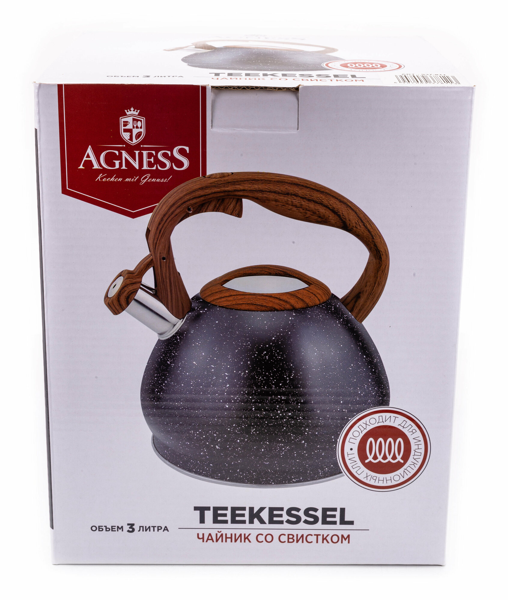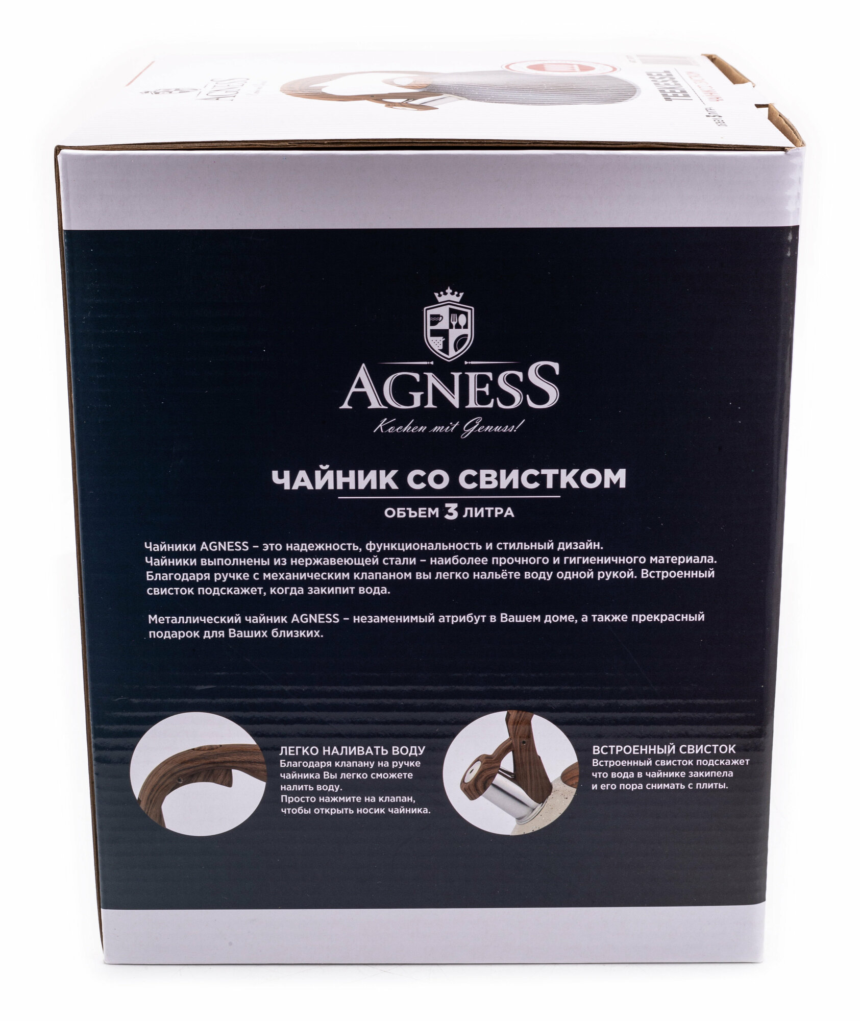 Чайник agness со свистком 3,0 л термоаккумулирующее дно, индукция