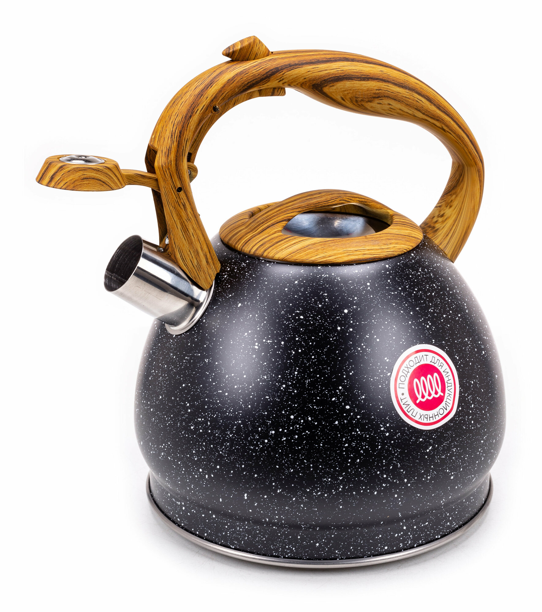 Купить Чайник для плиты Агнесс Black Marble 937-811 со свистком из нержавеющей стали черный 3.0л / для кипячения воды / кухонная посуда для всех видов плит