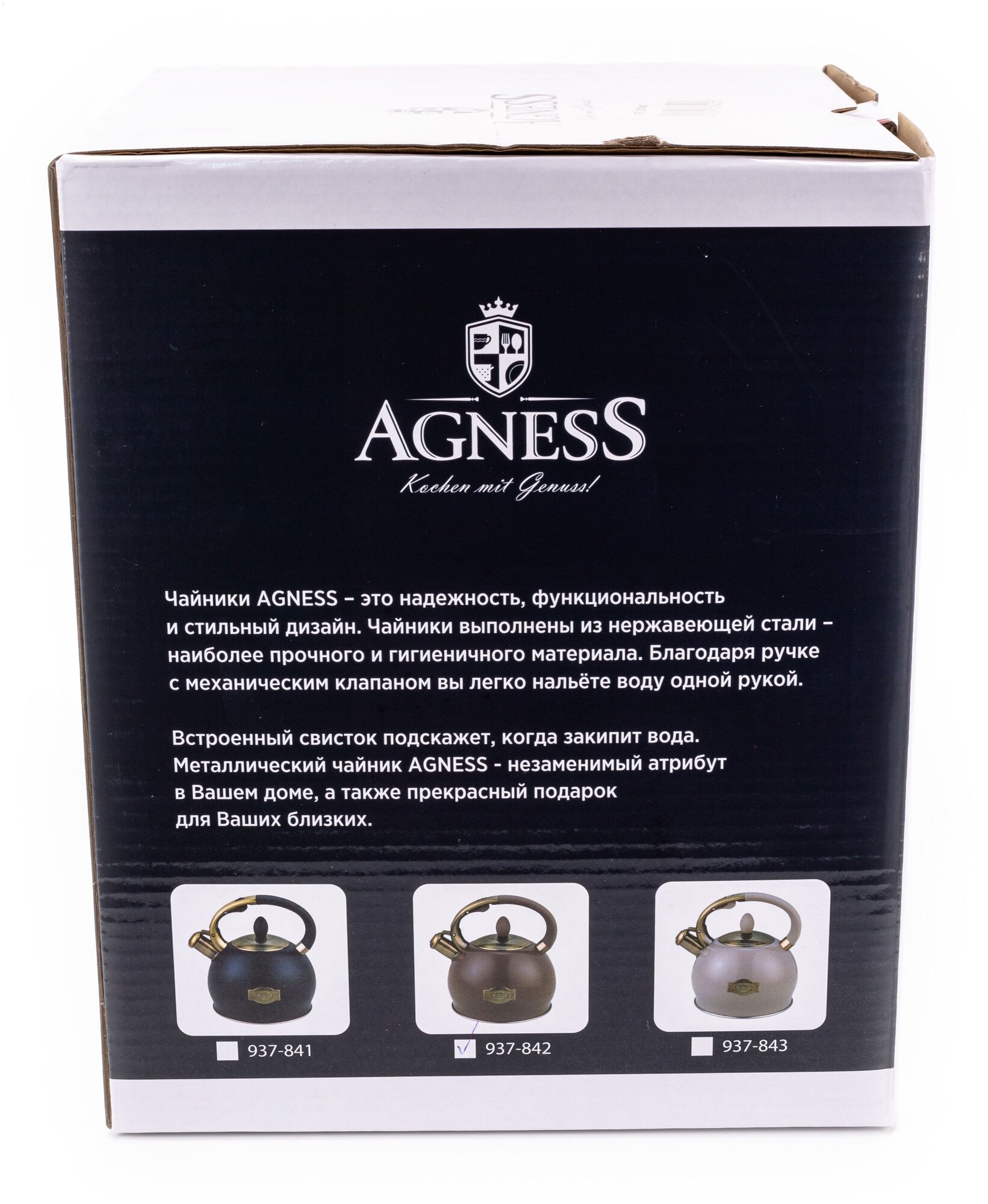 Купить Чайник Agness со свистком, 3л капсульным дном шоколад 937-842