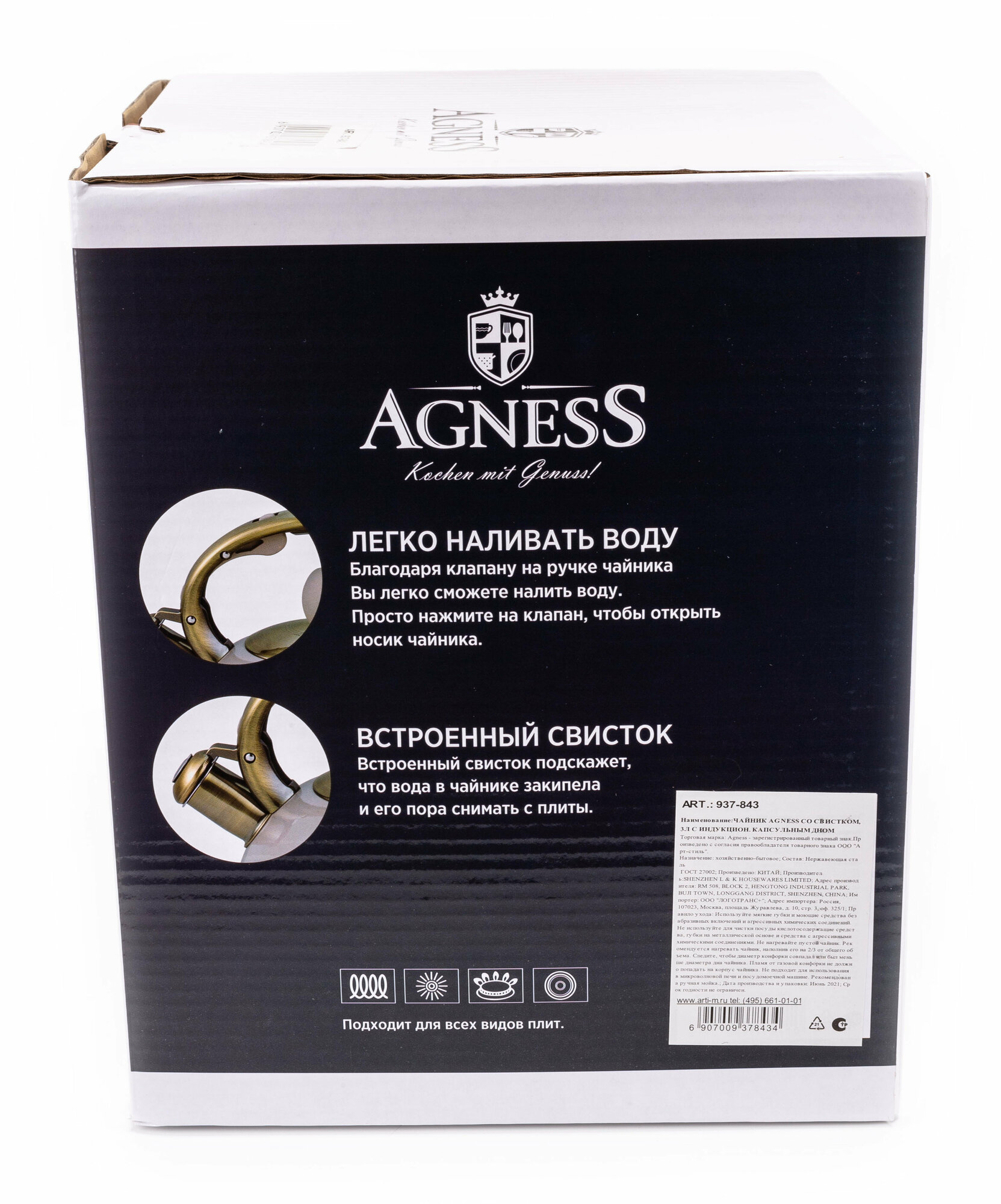 Чайник Agness со свистком, 3, 0 л, термоаккумулирующее дно, индукция (937-837)