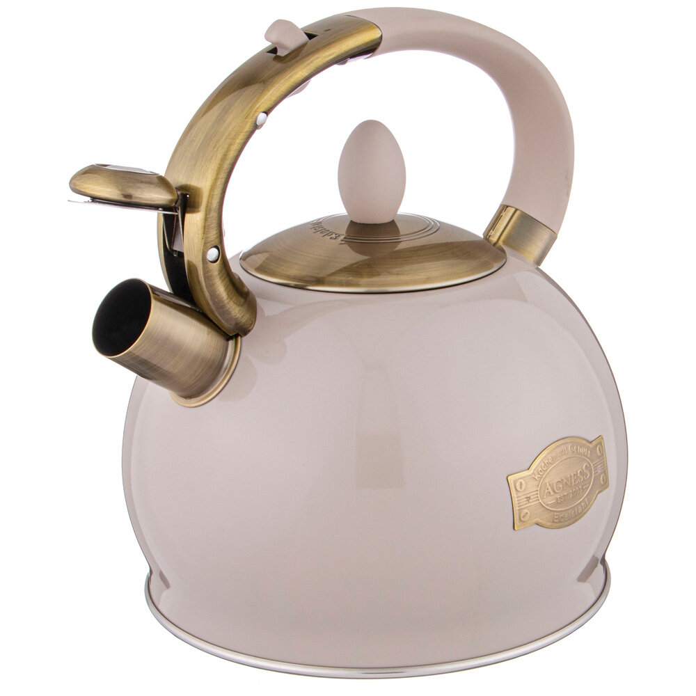 Чайник Agness "Тюдор", 3 л, термоаккумулирующее дно, для всех видов плит, со свистком