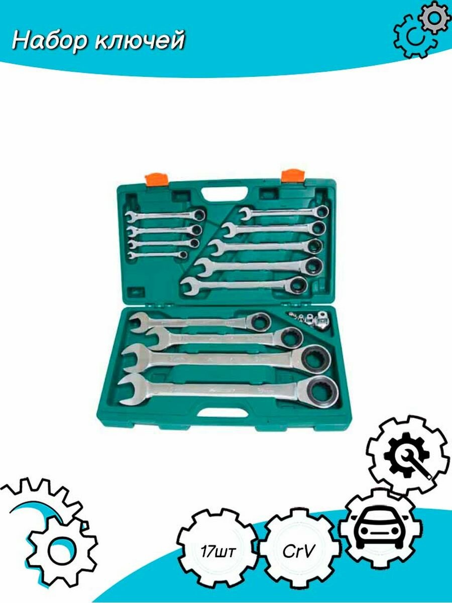 Набор ключей гаечных комбинированных трещоточных с аксессуарами в кейсе, 8-32 мм, 17 предметов Jonnesway W45117S