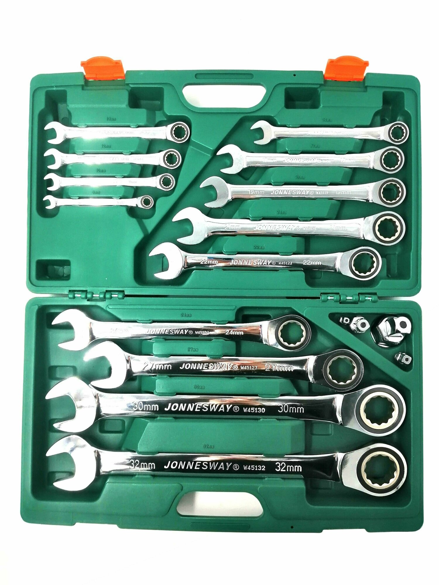 W45117S Jonnesway Набор ключей гаечных комбинированных трещоточных с аксессуарами в кейсе, 8-32 мм, 17 предметов