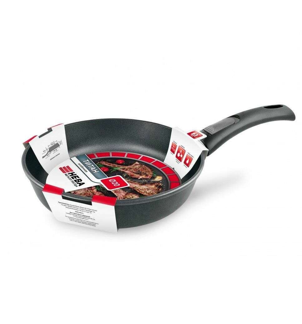 Сковорода 20 см Нева Металл Посуда Титан 9120, литая, без крышки, с толстым дном и с антипригарным покрытием