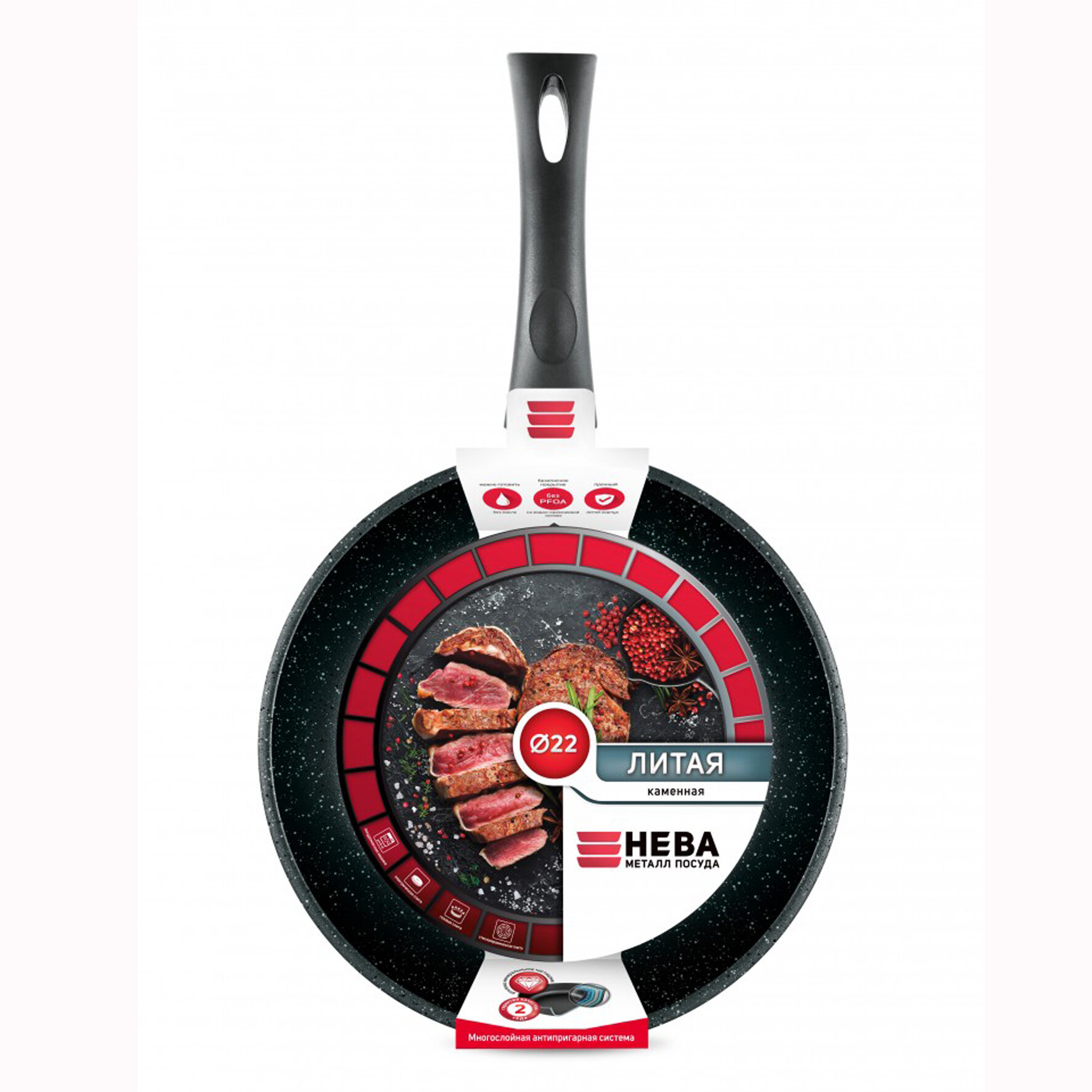 Сковорода Нева Металл Посуда НМП "Каменная" Чёрный гранит 22 см