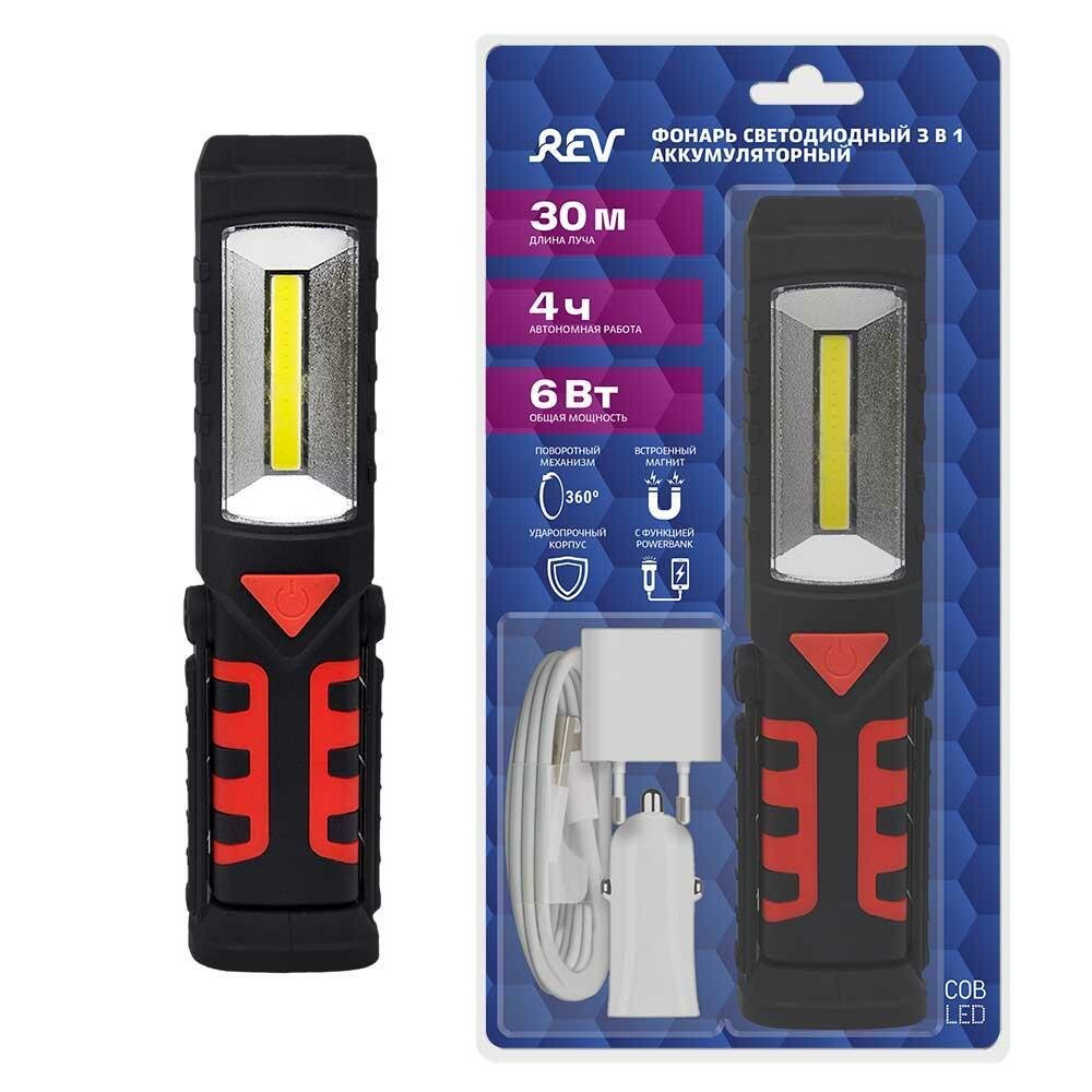 Фонарь ручной Rev аккумуляторный, поворотный механизм, встроенный магнит, литиевый аккумулятор, 6Вт, 2000 мАч, 29055 1