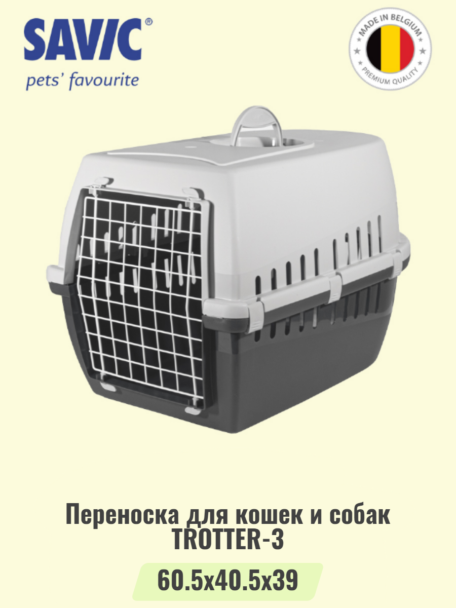 Переноска для кошек и собак Savic "Trotter-3", пластик, металл, 60,5х40,5х39 см