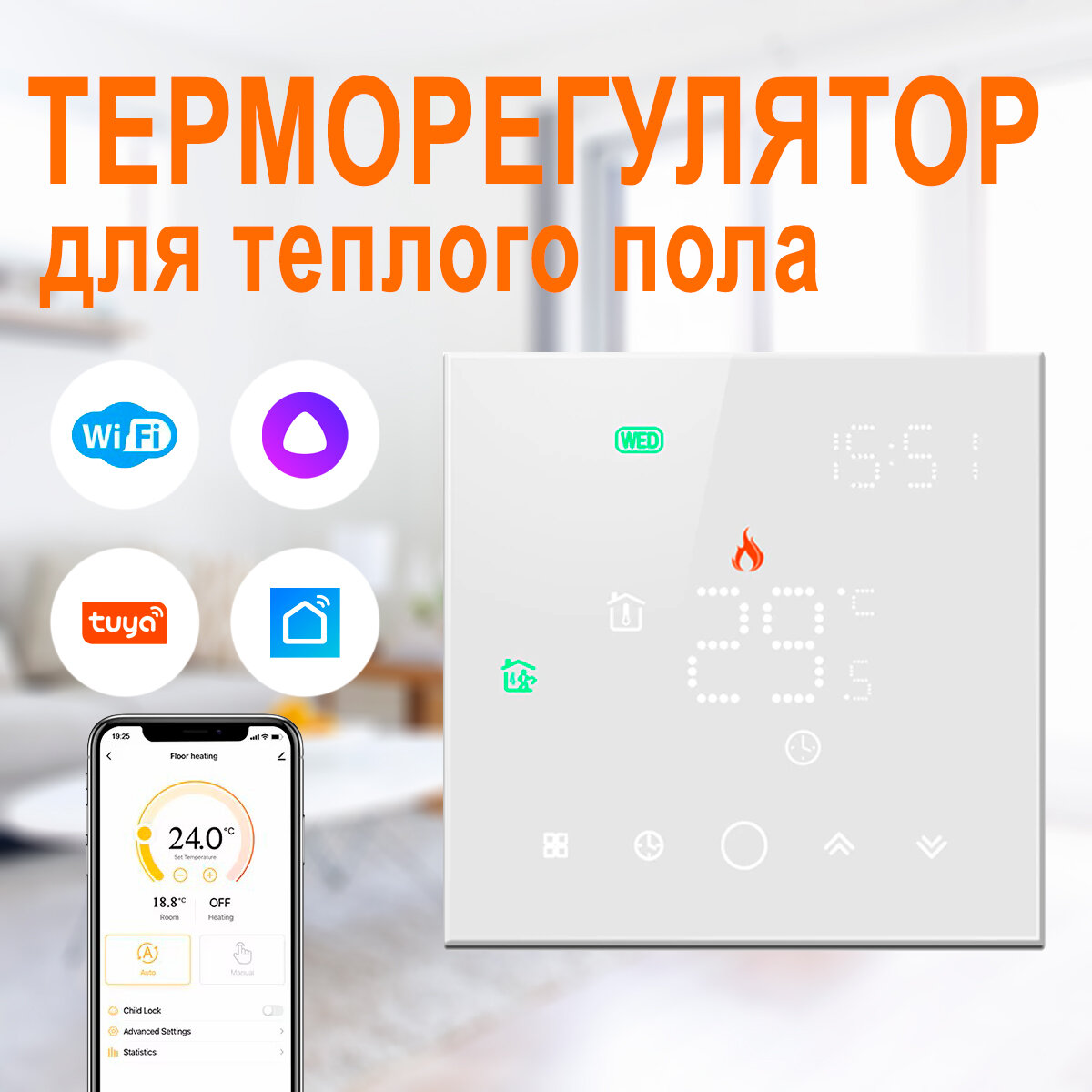 Умный терморегулятор для теплого пола с Wi-Fi / Сенсорный программируемый регулятор температуры BixtonHeat TGW Wi-Fi White / Термостат интересное: