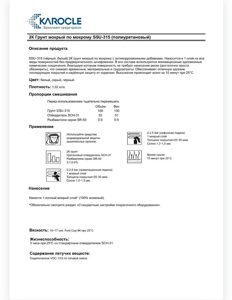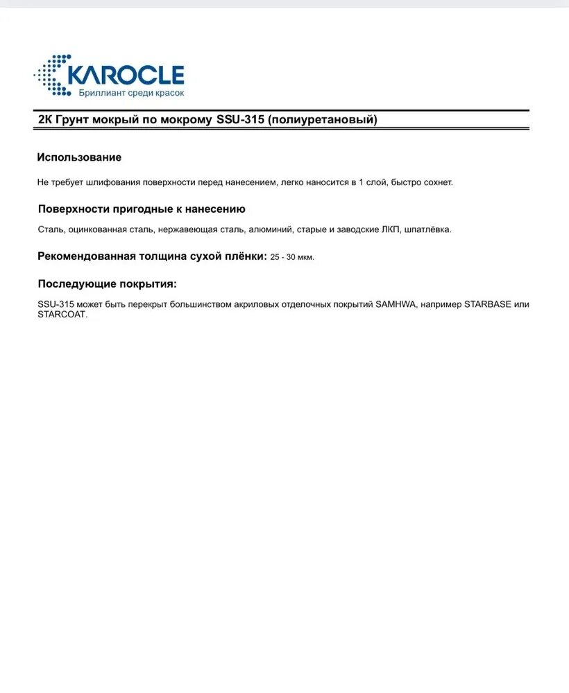 KAROCLE Грунт 2К STARSEALER SSU315-Gray1л -3:1Спец.адгезион.грунт мокрый.по мокрому.без шлиф.+SCH31-0.4л интересное: