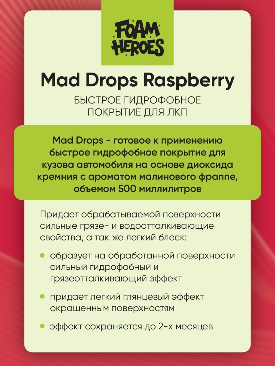 Mad Drops Raspberry Быстрое гидрофобное покрытие для ЛКП Foam Heroes 500мл