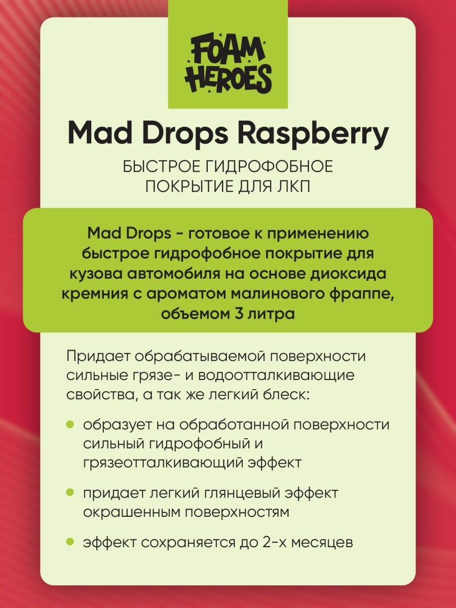Купить Foam Heroes Mad Drops Raspberry быстрое гидрофобное покрытие для ЛКП, 3л
