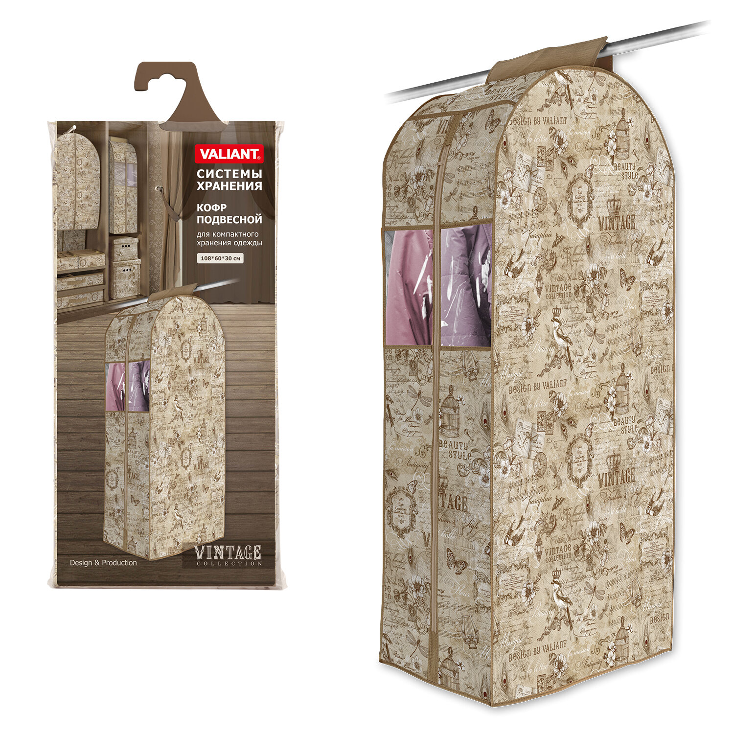 VAL VN-C-108 Кофр подвесной для одежды, 108*60*30 см, VINTAGE, шт