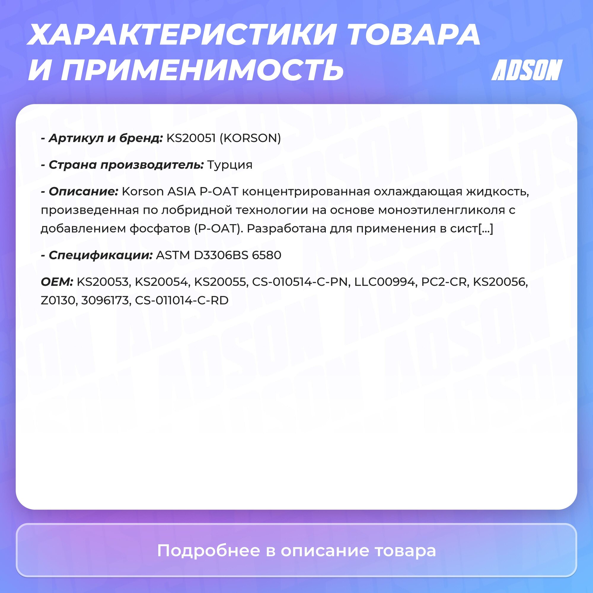 Антифриз концентрат ASIA Р-ОАТ фиолетовый 1л KORSON KS20051 интересное: