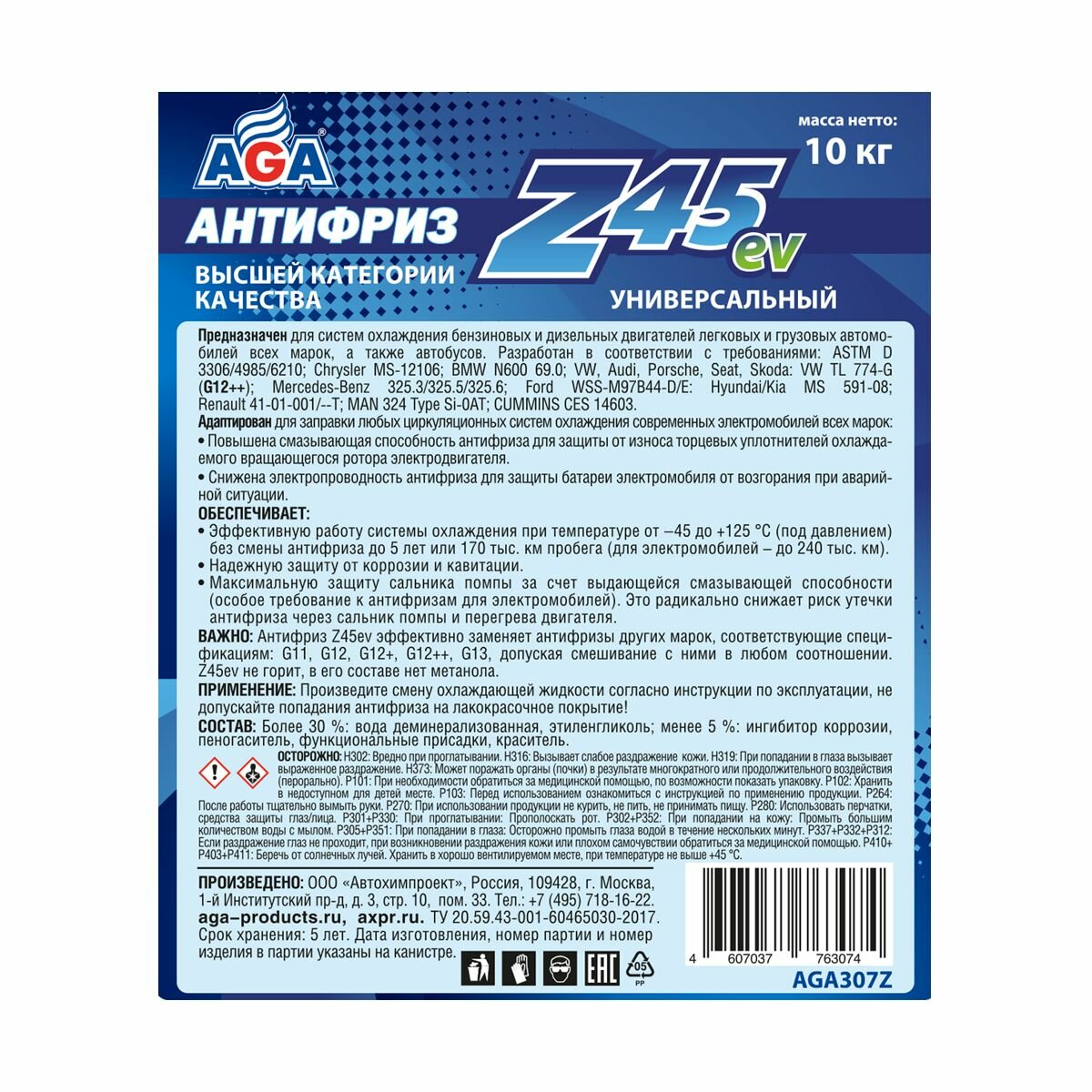 Купить Антифриз Готовый К Применению Синий -45С 10 Кг G-12++ Aga Antifreeze Aga-Z45 Premix AGA арт. aga307z