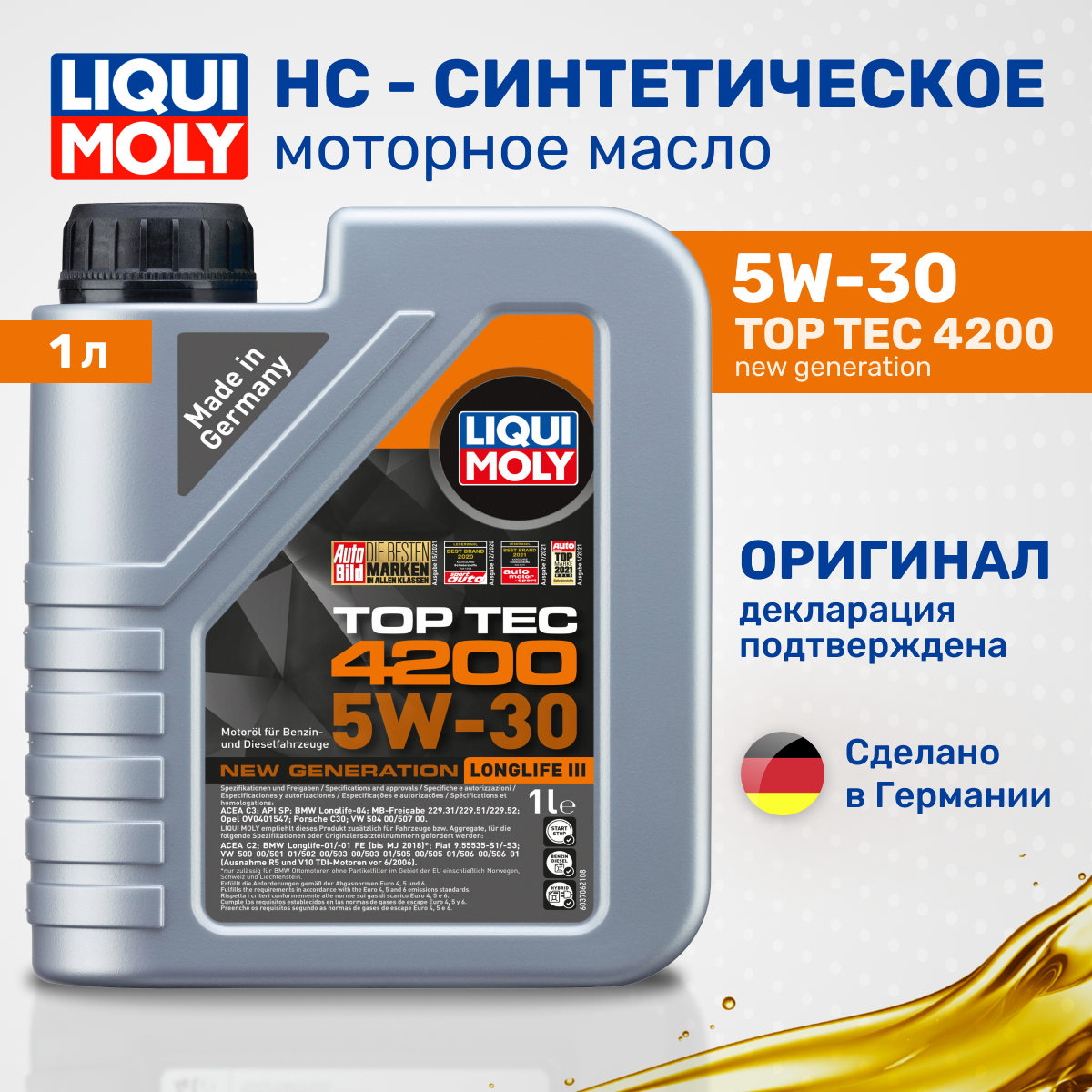 Масло моторное синтетическое Liqui Moly Top Tec 4200 5W-30 New Generation 8972, HC, 1л интересное: