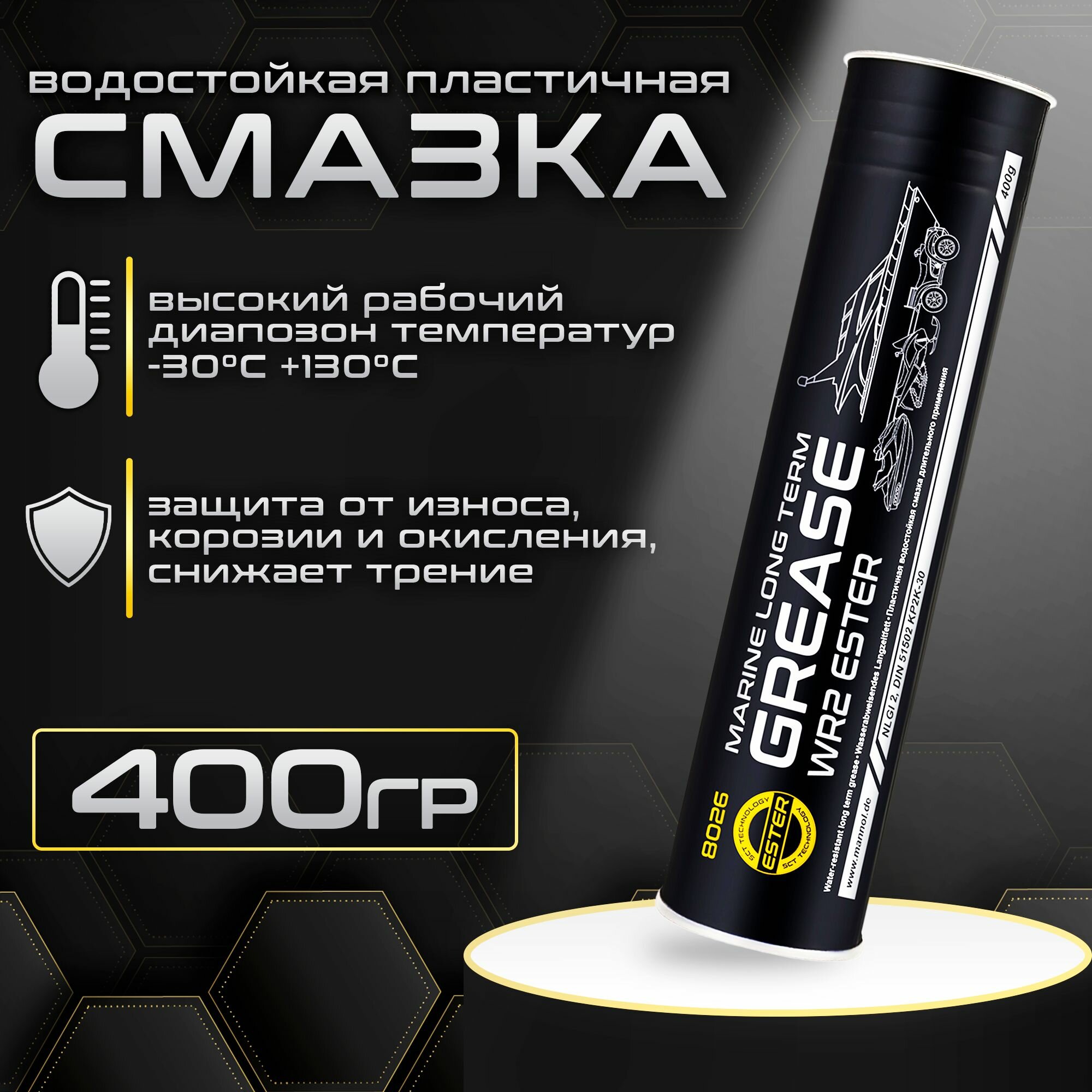 8093 / 8026 MANNOL WR-2 MARINE LONG TERM GREASE 230 гр. Пластичная водостойкая смазка
