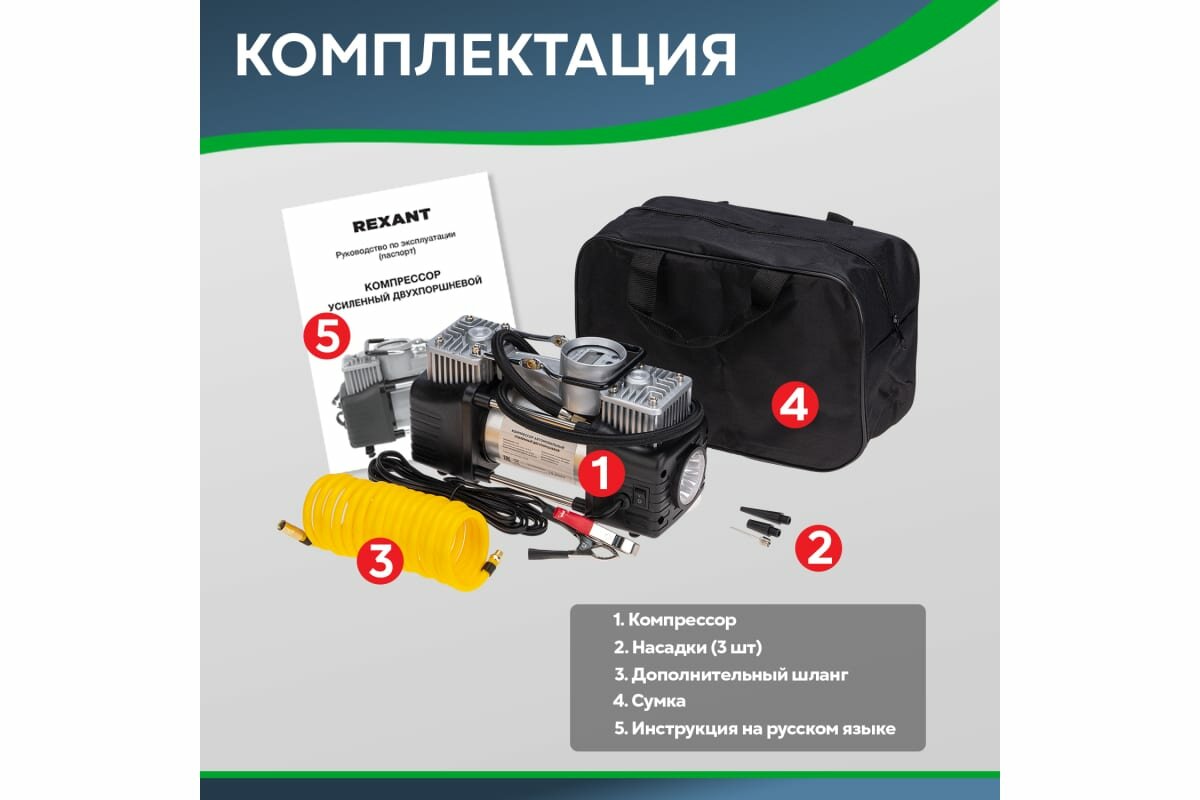 Ниже Вы можете прочитать отзывы на Компрессор автомобильный усиленный двухпоршневой REXANT / Насос для велосипеда, надувного матраса, мячей, надувной лодки, 60л/мин 10АТМ электронный манометр , функция автостоп, ознакомится с подробными характеристиками, посмотреть интересные обзоры и фотографии на Компрессор автомобильный усиленный двухпоршневой REXANT / Насос для велосипеда, надувного матраса, мячей, надувной лодки, 60л/мин 10АТМ электронный манометр , функция автостоп.