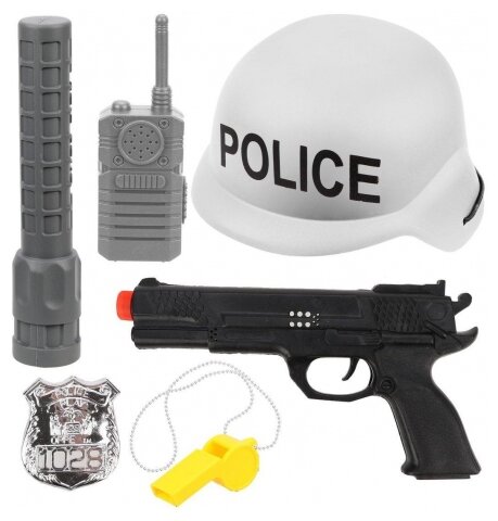 Игр.набор Полиция, пистолет, значок, рация, фонарик, каска, пакет интересное: