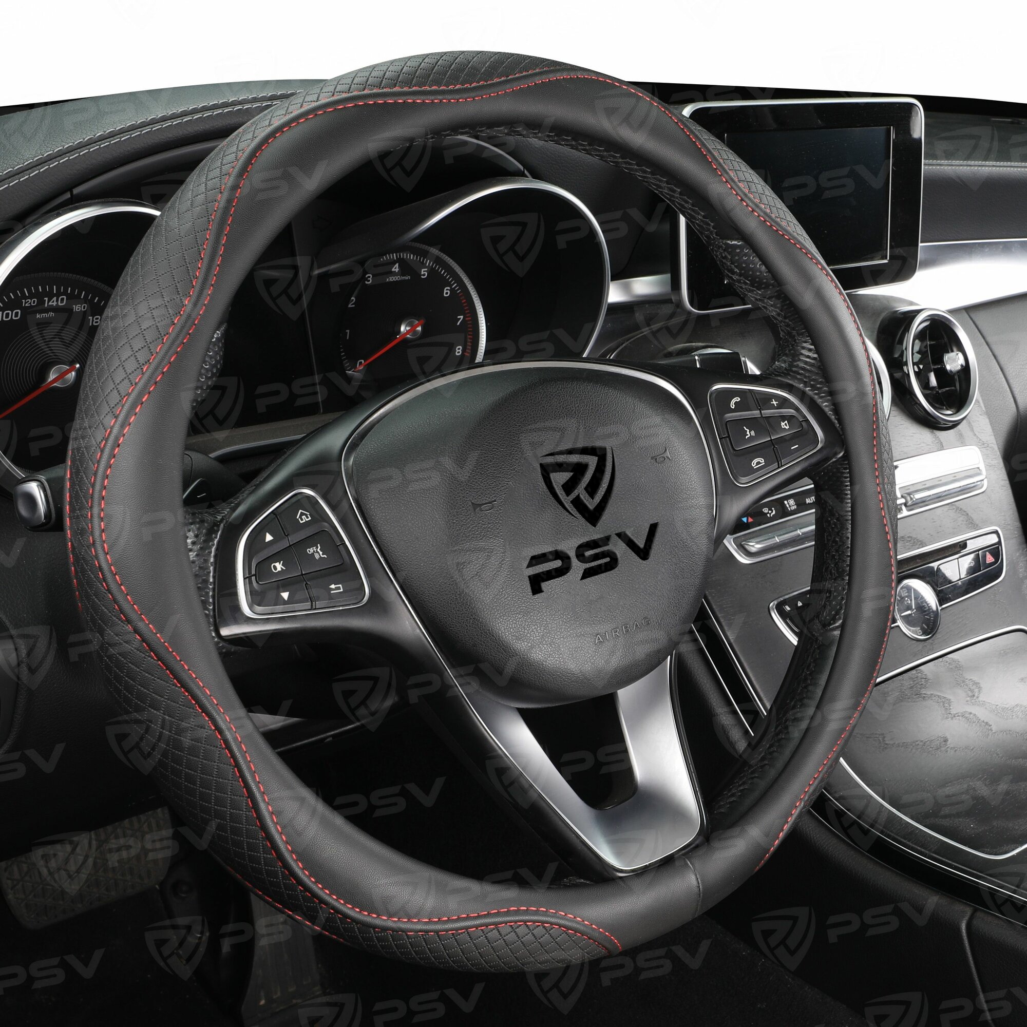 PSV 136843 Оплетка на руль "PSV" иск.кожа ILLUSION (Черный/Отстрочка черная) M