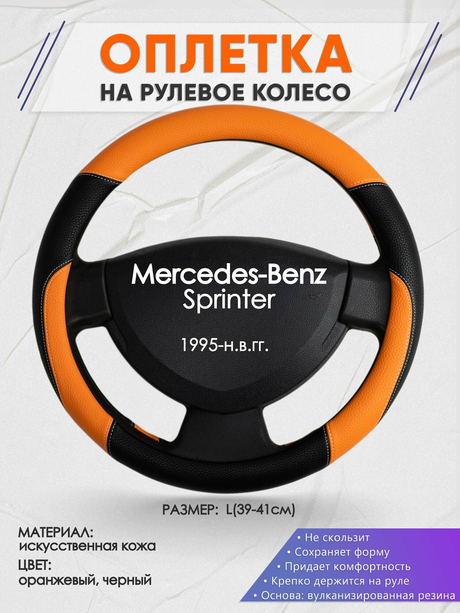Оплетка на руль для Mercedes-Benz Sprinter(Мерседес Бенц Спринтер) 1995-н. в, L(39-41см), Искусственная кожа 92
