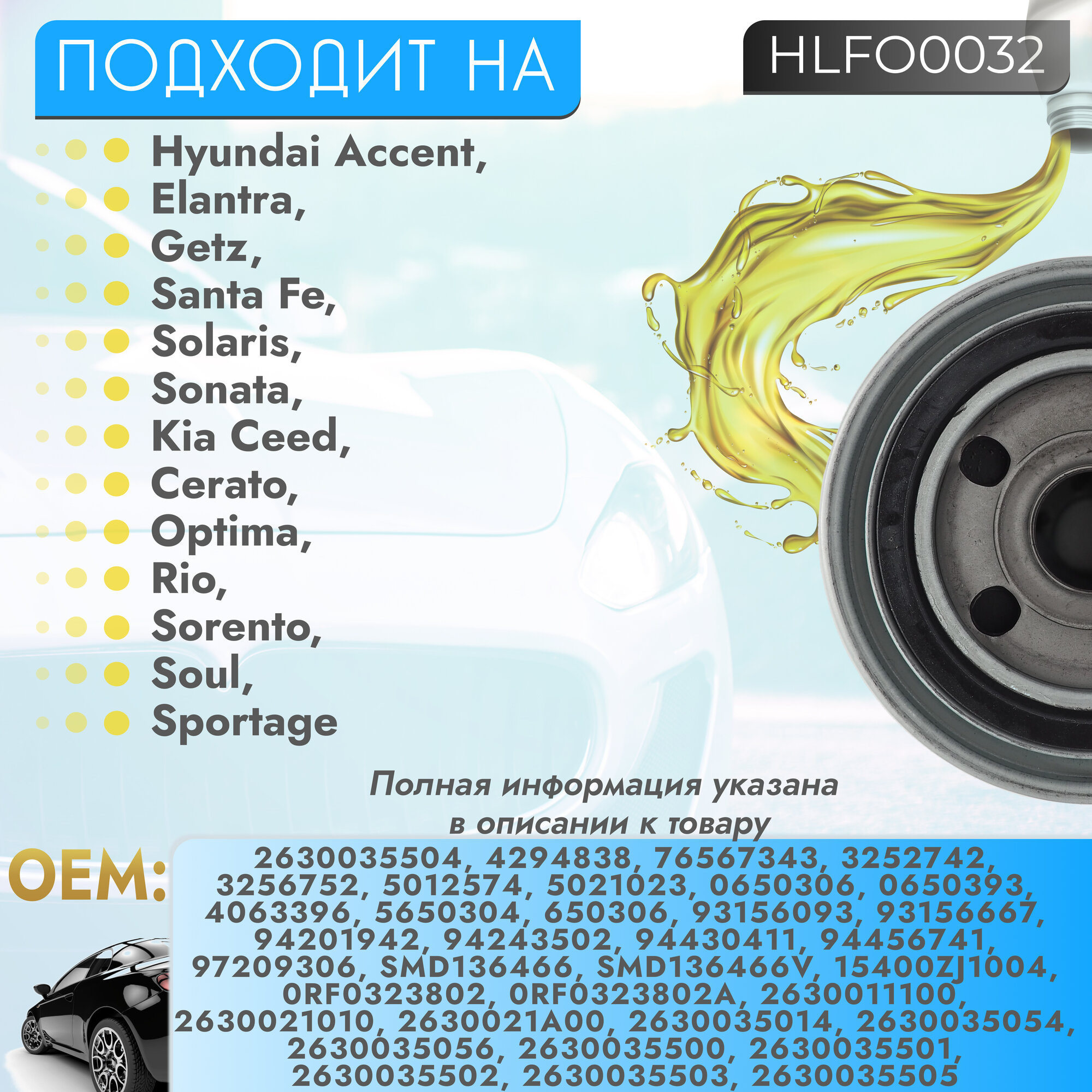 Масляный фильтр для автомобиля HYUNDAI Accent, Elantra, Getz, Santa Fe, Solaris, Sonata; KIA Ceed, Cerato, Optima, Rio, Sorento, Soul, Sportage интересное: