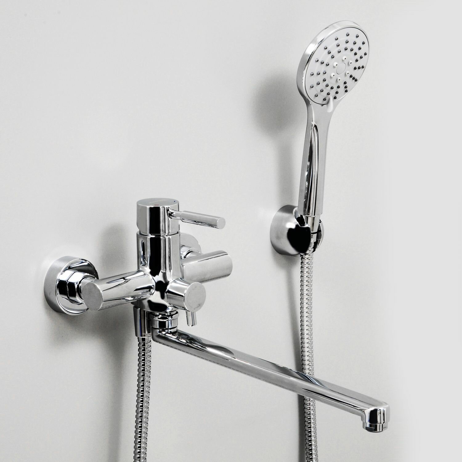 Смеситель для ванны и душа с длинным изливом и лейкой