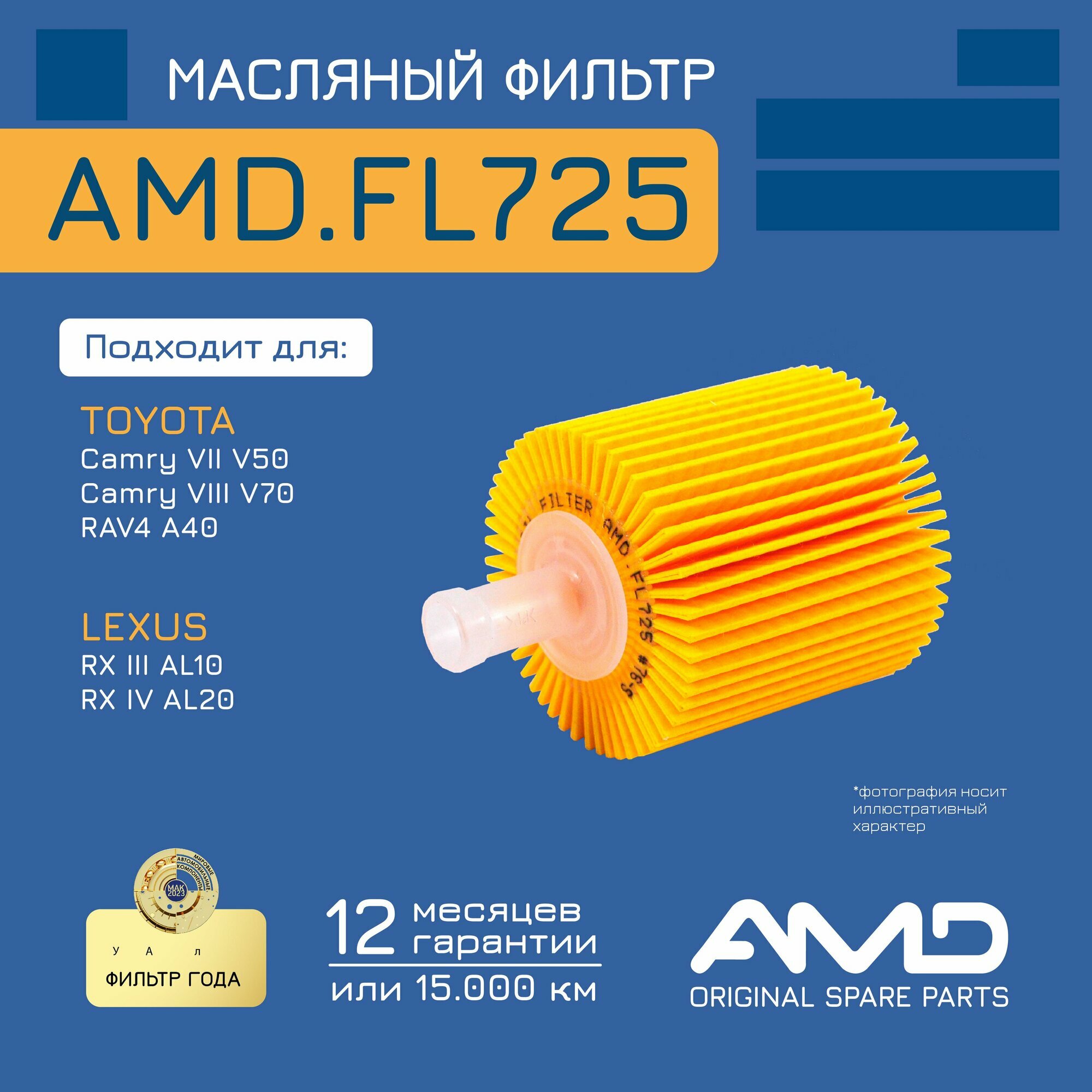 Фильтр масляный 04152YZZA1 AMD. FL725 для TOYOTA Camry VII Camry VIII RAV4 LEXUS RX III RX IV