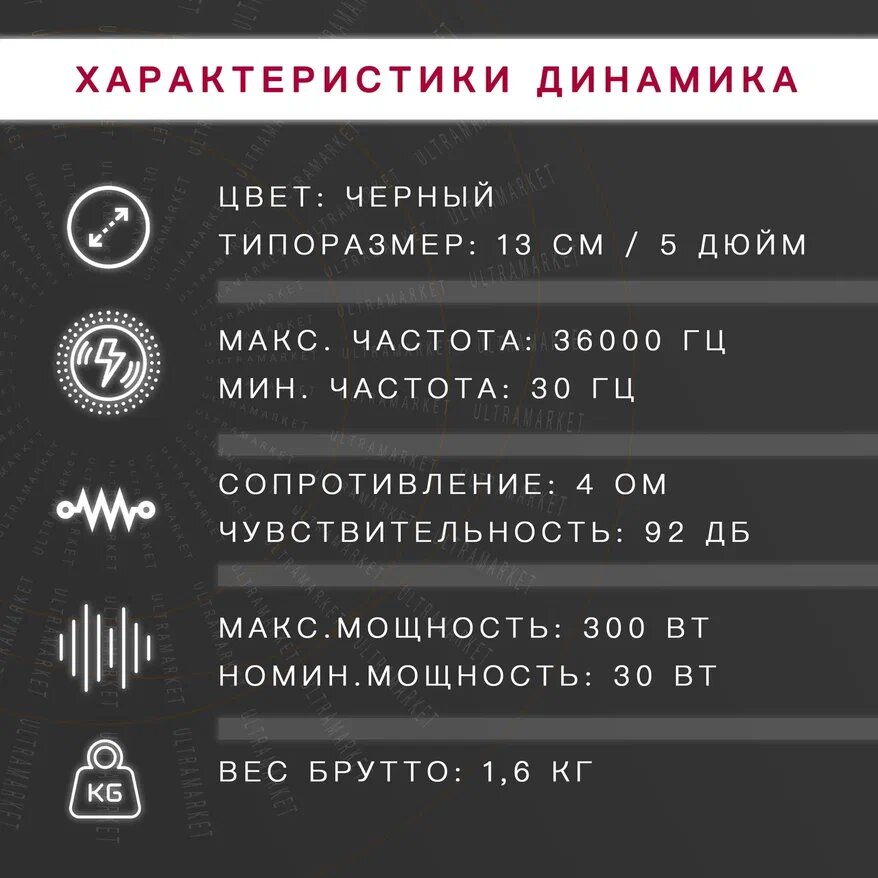 | Комплектация | Динамики 2 шт; защитные сетки 2 шт; провода для подключения; крепления для саморезов 8 шт; саморезы для акустики 8 шт. |
