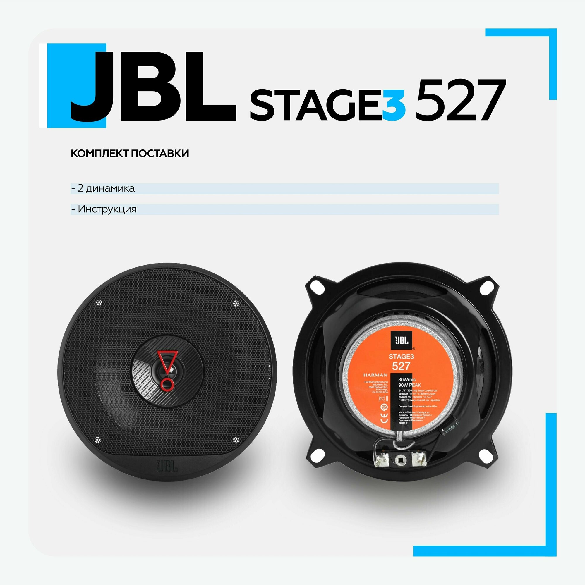 2-полосная коаксиальная автоакустика JBL Stage3 527 13см (5дюйм.) RMS 40Вт, 91 дБ интересное: