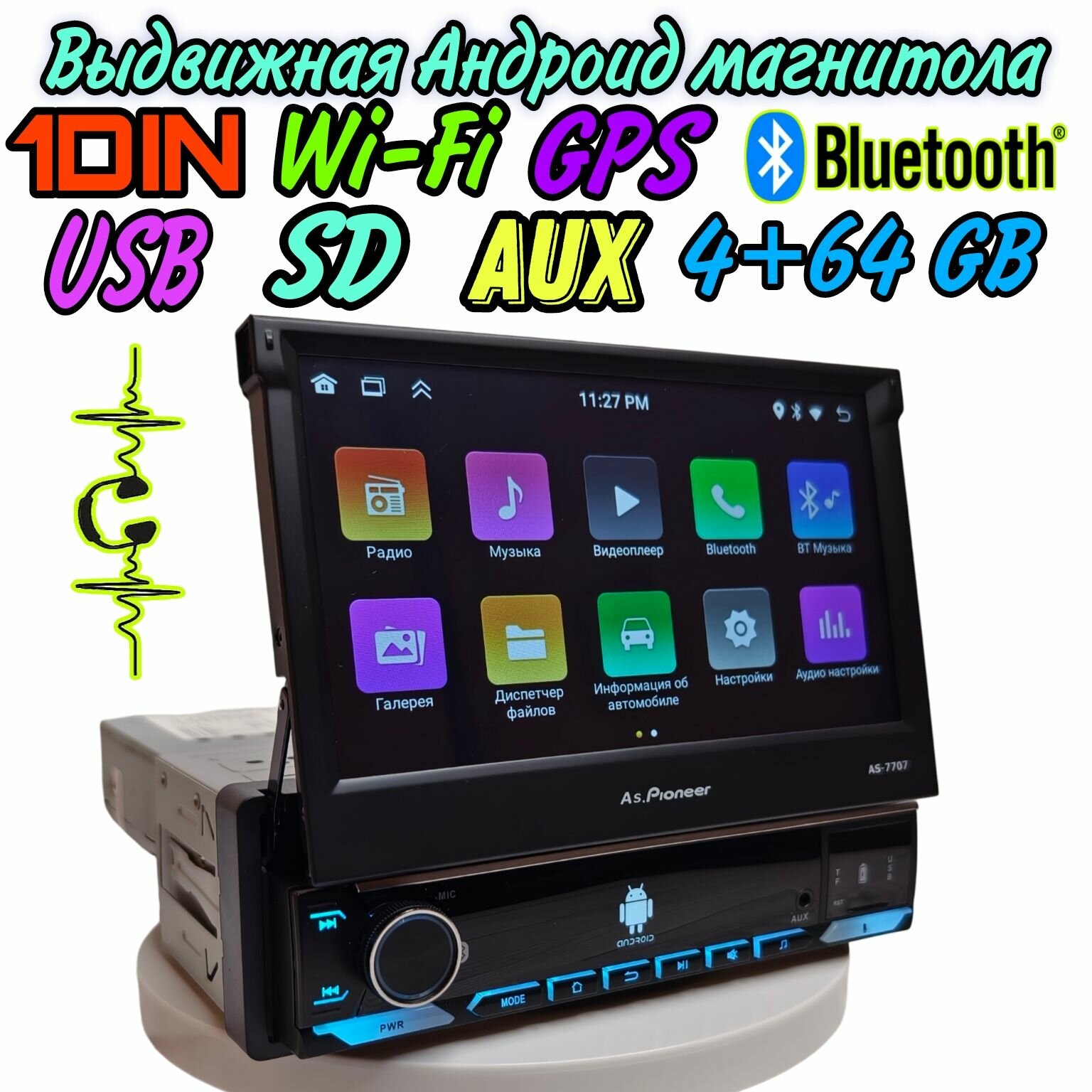 1 DIN Выдвижная Android магнитола 4/64 GB с сенсорным 7 дюймовым дисплеем / IPS экран / GPS Навигатор / Wi-Fi / Bluetooth / AUX / SD / USB / RDS интересное: