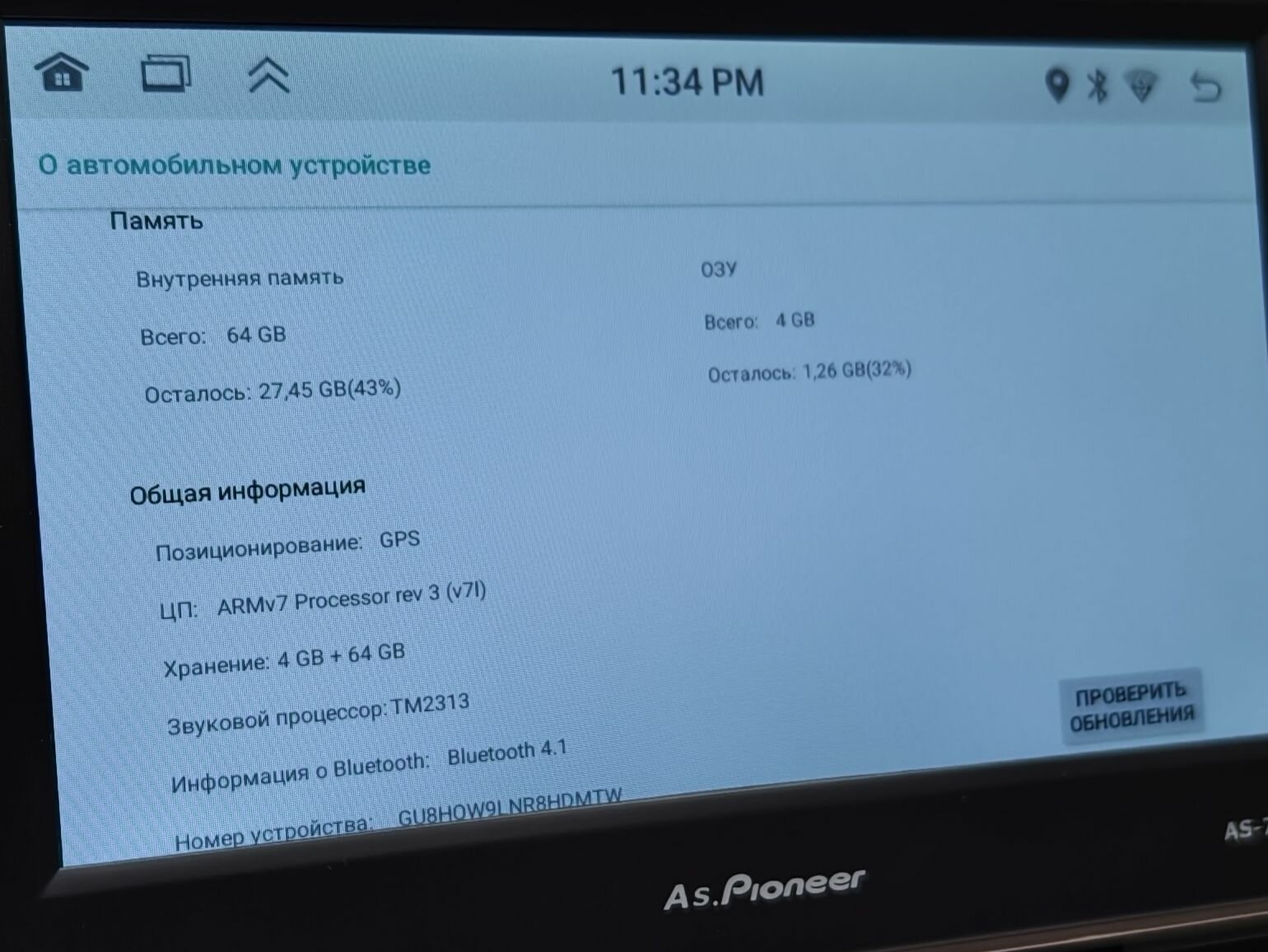 | Поддержка камеры заднего вида | есть |