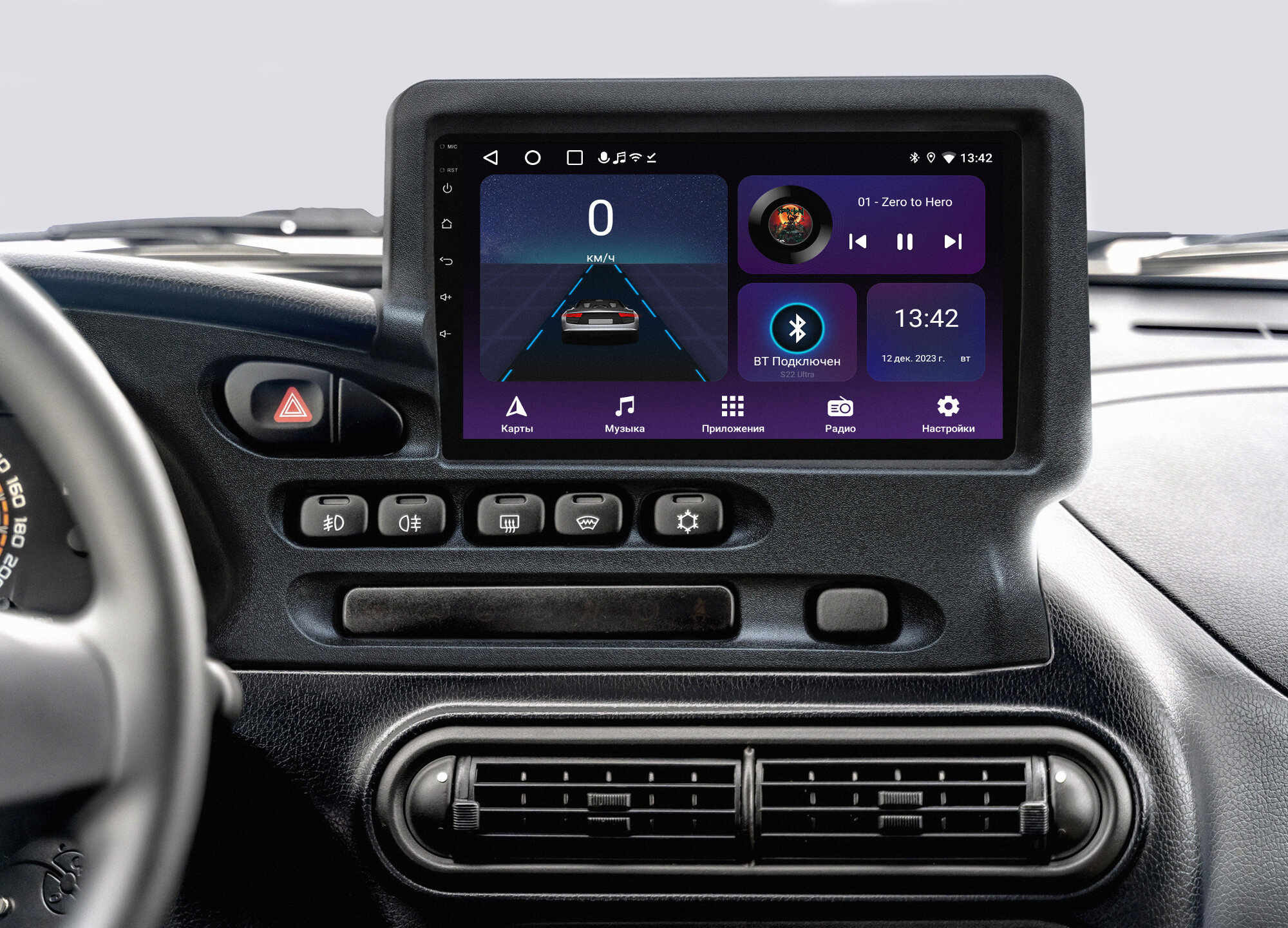 | Дополнительная информация | Для установки данной магнитолы требуется доработка салона автомобиля. Необходимо при помощи инструмента выпилить посадочное место под рамку магнитолы. Без данных изменений установка магнитолы невозможна. Если в автомобиле была штатная мультимедиа, то установка магнитолы без доработки возможна, но останутся небольшие щели и поэтому мы рекомендуем доработать место установки в любом случае. |