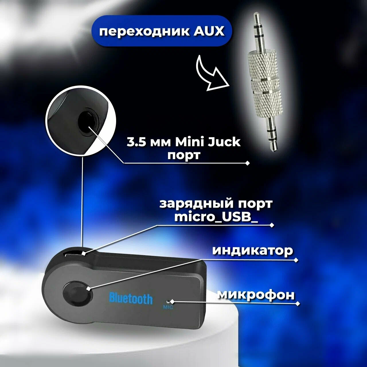 Блютуз-ресивер для авто и гаджетов с AUX/Bluetooth для музыки Черный