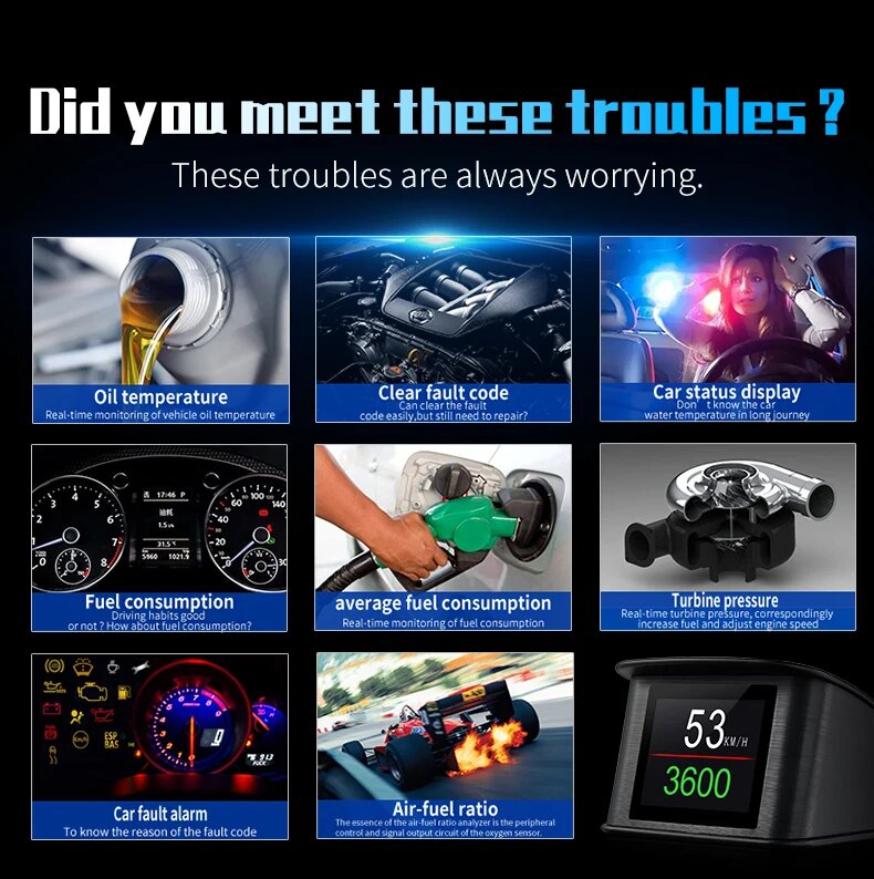 OBDHUD P10 Автомобильный дисплей OBD2 HUD бортовой компьютер цифровой спидометр с потреблением топлива автомобильные электронные аксессуары интересное: