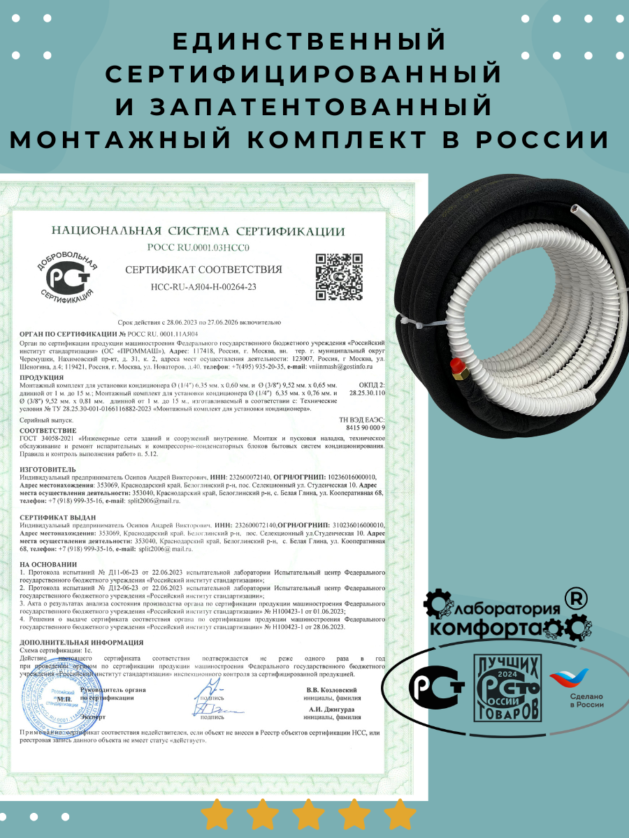 Ниже Вы можете прочитать отзывы на Готовый комплект для установки кондиционера 4,5 метра "Премиум", трасса для кондиционера, монтажный комплект для кондиционера, ознакомится с подробными характеристиками, посмотреть интересные обзоры и фотографии на Готовый комплект для установки кондиционера 4,5 метра "Премиум", трасса для кондиционера, монтажный комплект для кондиционера.